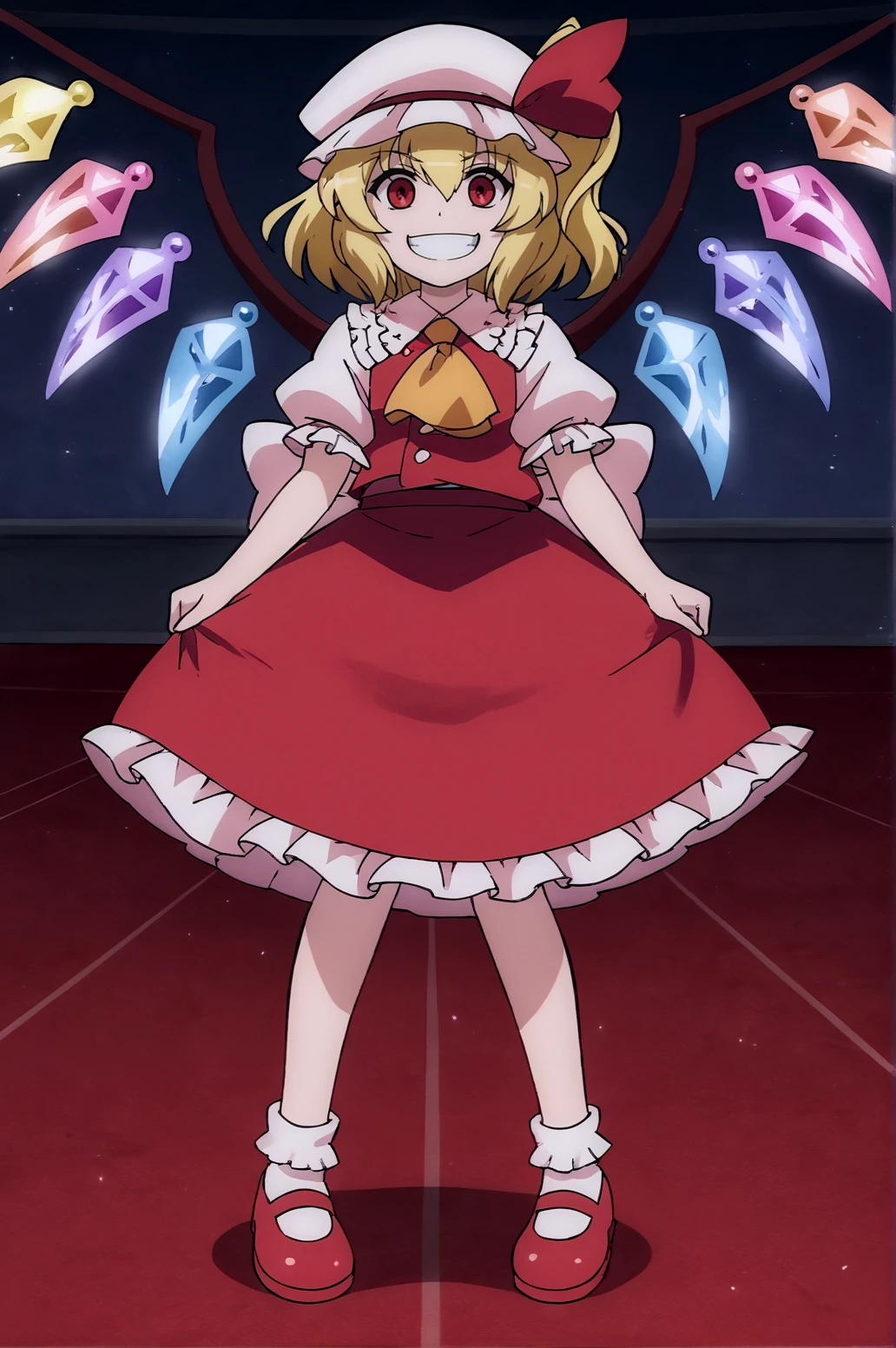 Trigger Words Optionnal: ascot, crystal, frilled skirt, frills, hat, hat ribbon, puffy short sleeves, puffy sleeves, red ribbon, red skirt, red vest, ribbon, shirt, short sleeves, skirt, vest, white headwear, white shirt, wings, shoes, socks