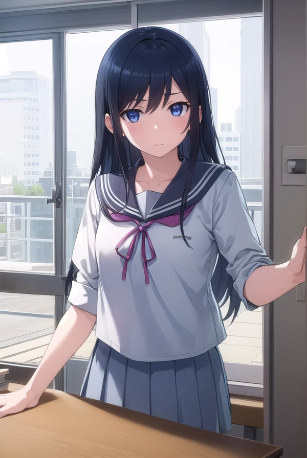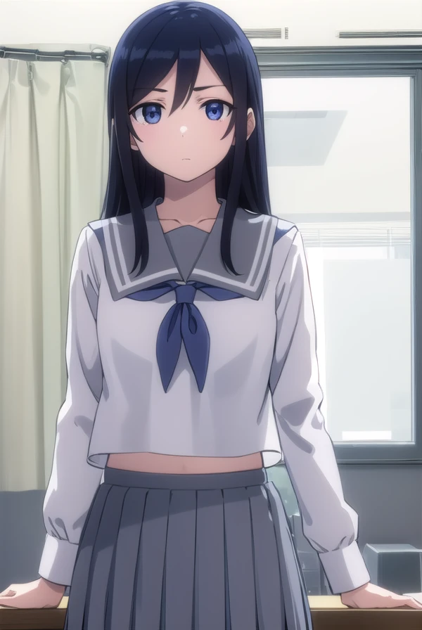 ayase aragaki, long hair, blue eyes, black hair, hair between eyes,