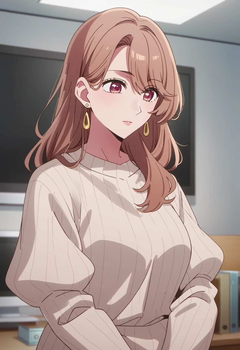 Trigger Words: saitou miyako, mature female, short hair, brown hair, brown eyes, hair bun, single hair bun