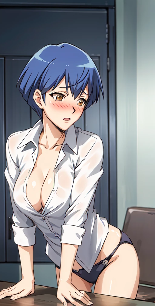 Main outfit, "secretary suit, earrings, white miniskirt, pantyhose"