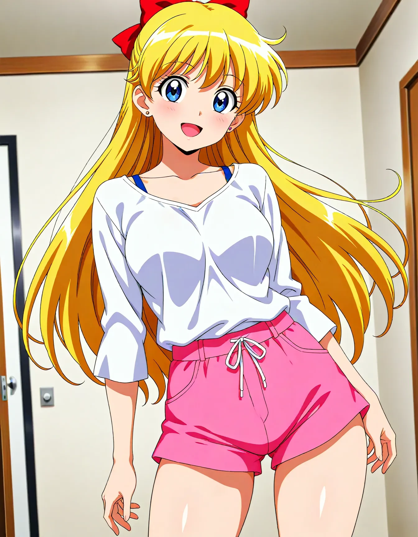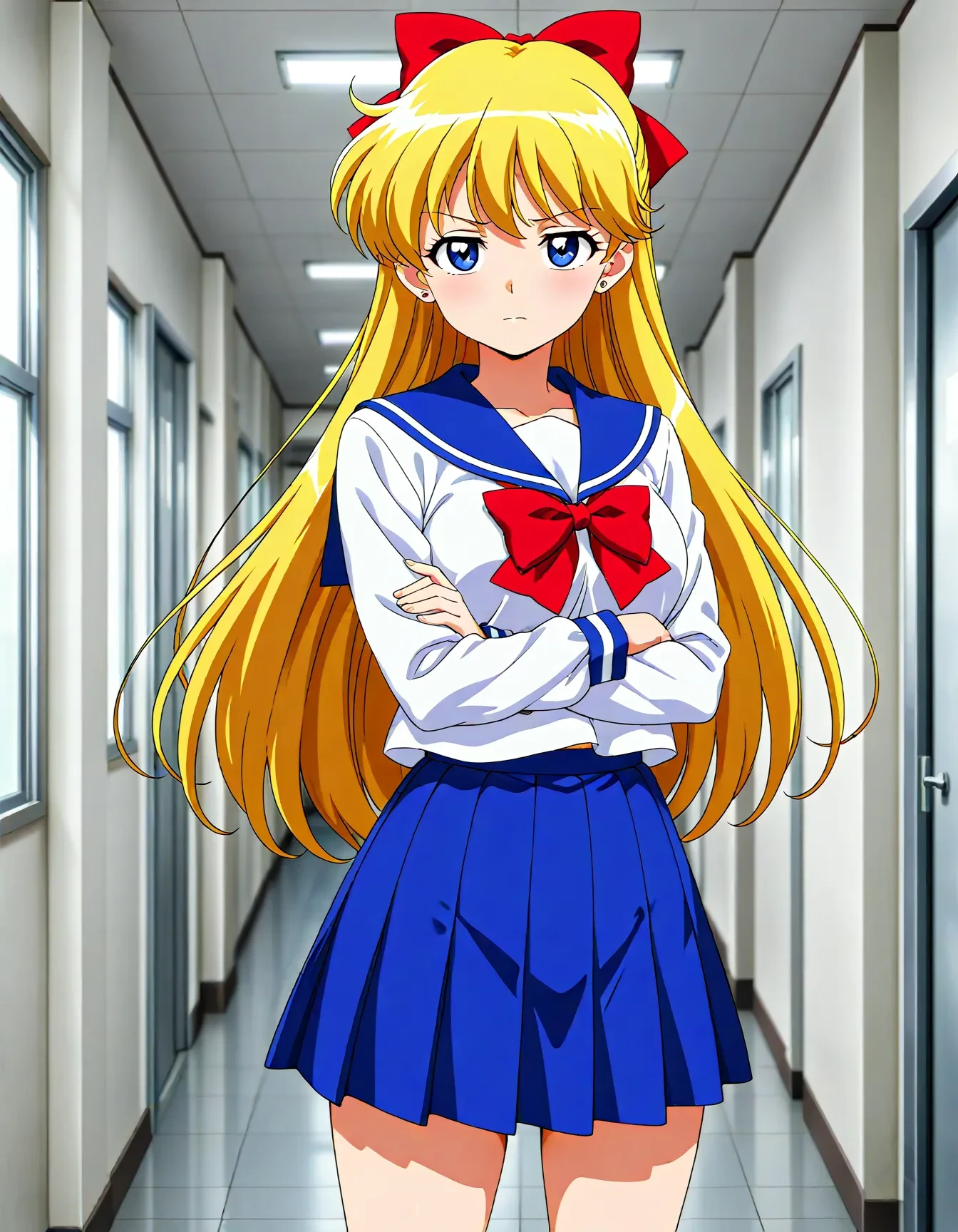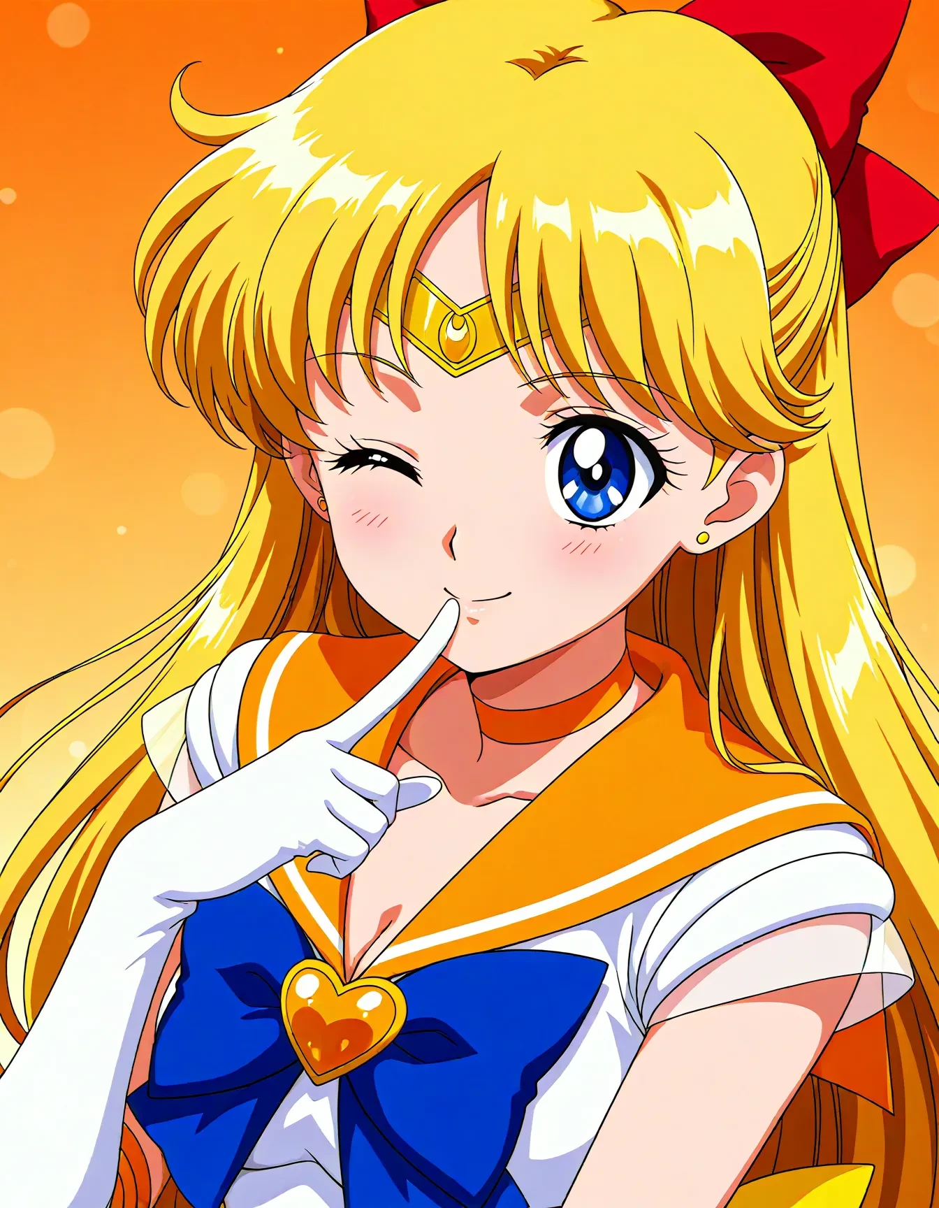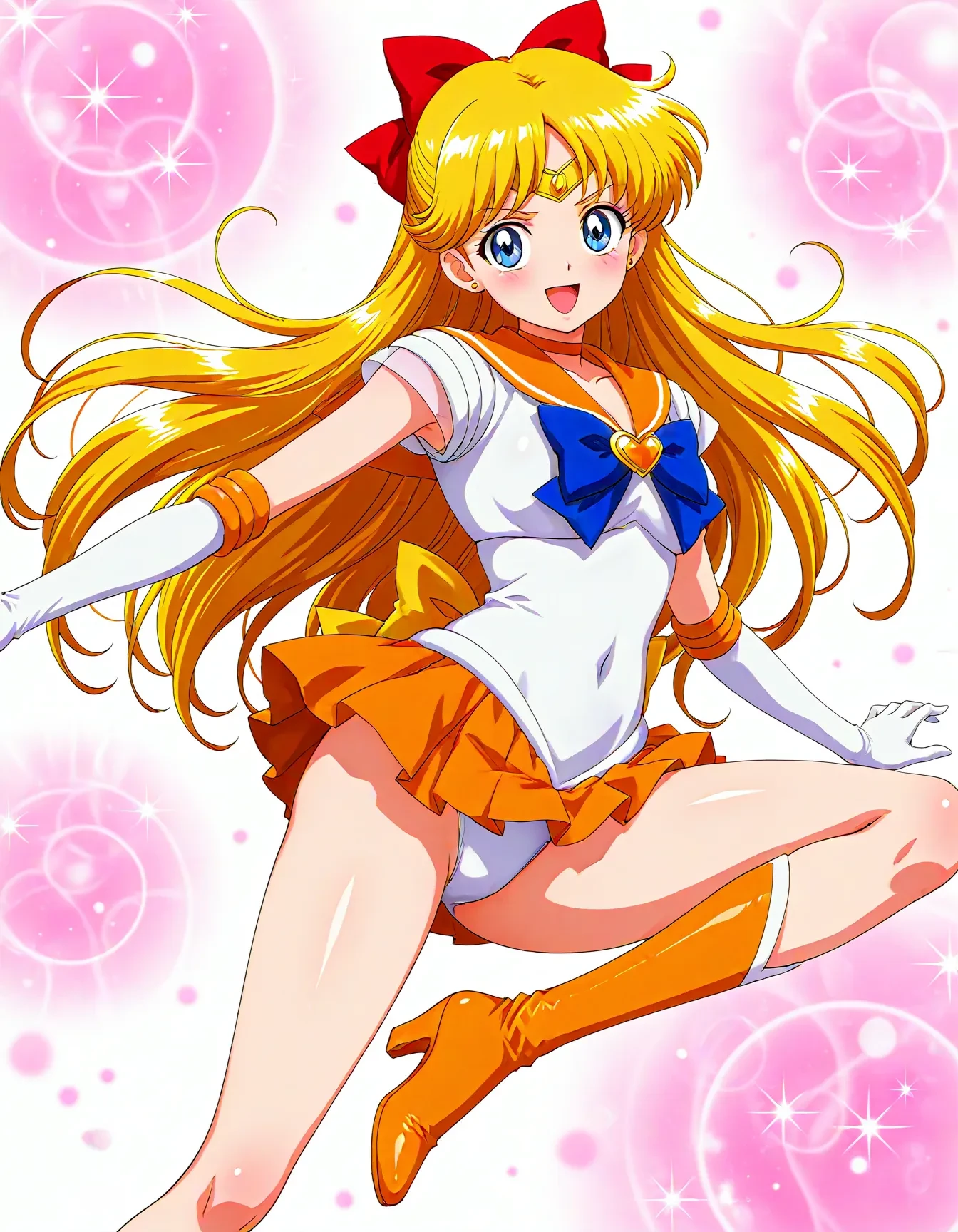 triggerWord: aino minako,1girl,blonde hair,blue eyes,bow,red hair bow,half updo,long hair,red bow,tiara,yellow back bow,choker,elbow gloves,gloves,jewelry,magical girl,orange choker,orange sailor collar,orange skirt,sailor collar,sailor senshi uniform,skirt,white gloves,,orange footwear,