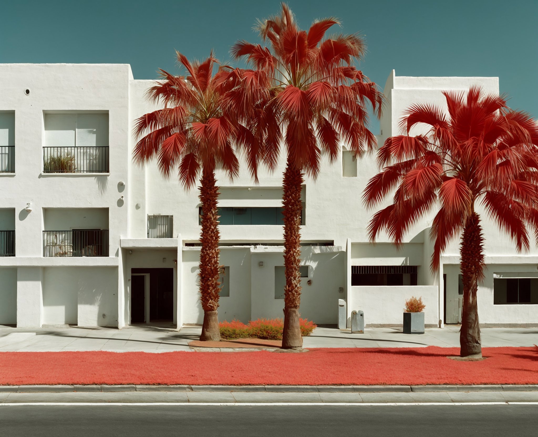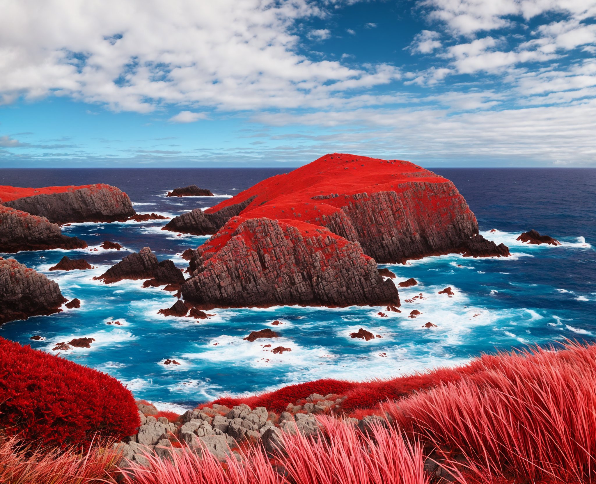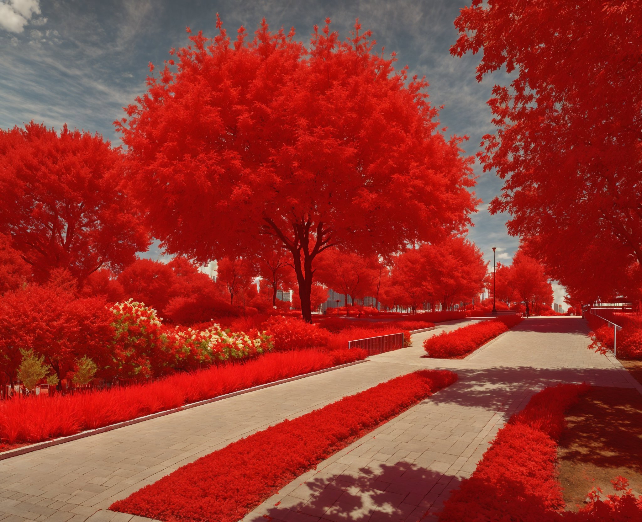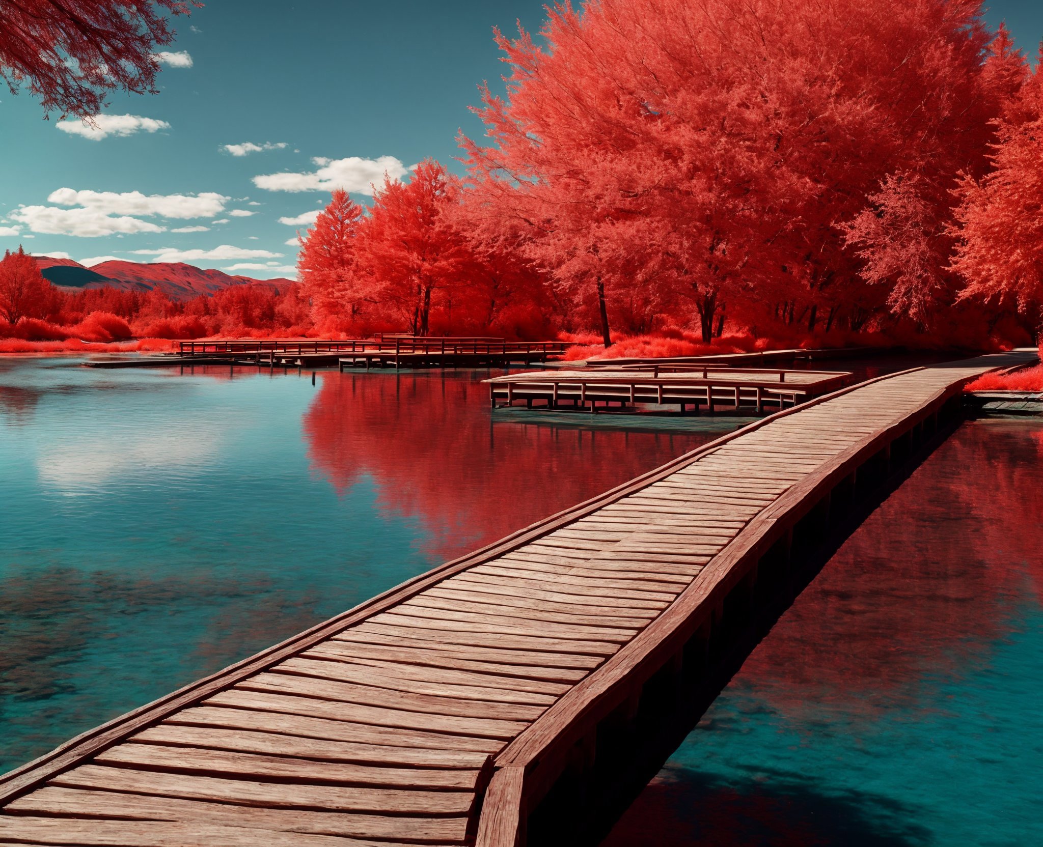 It is recommended to write the following tokens: red trees, red and blues, , liquid smoke, RAW, high quality, colorized photo, raw photo, blue lake, white mountain.