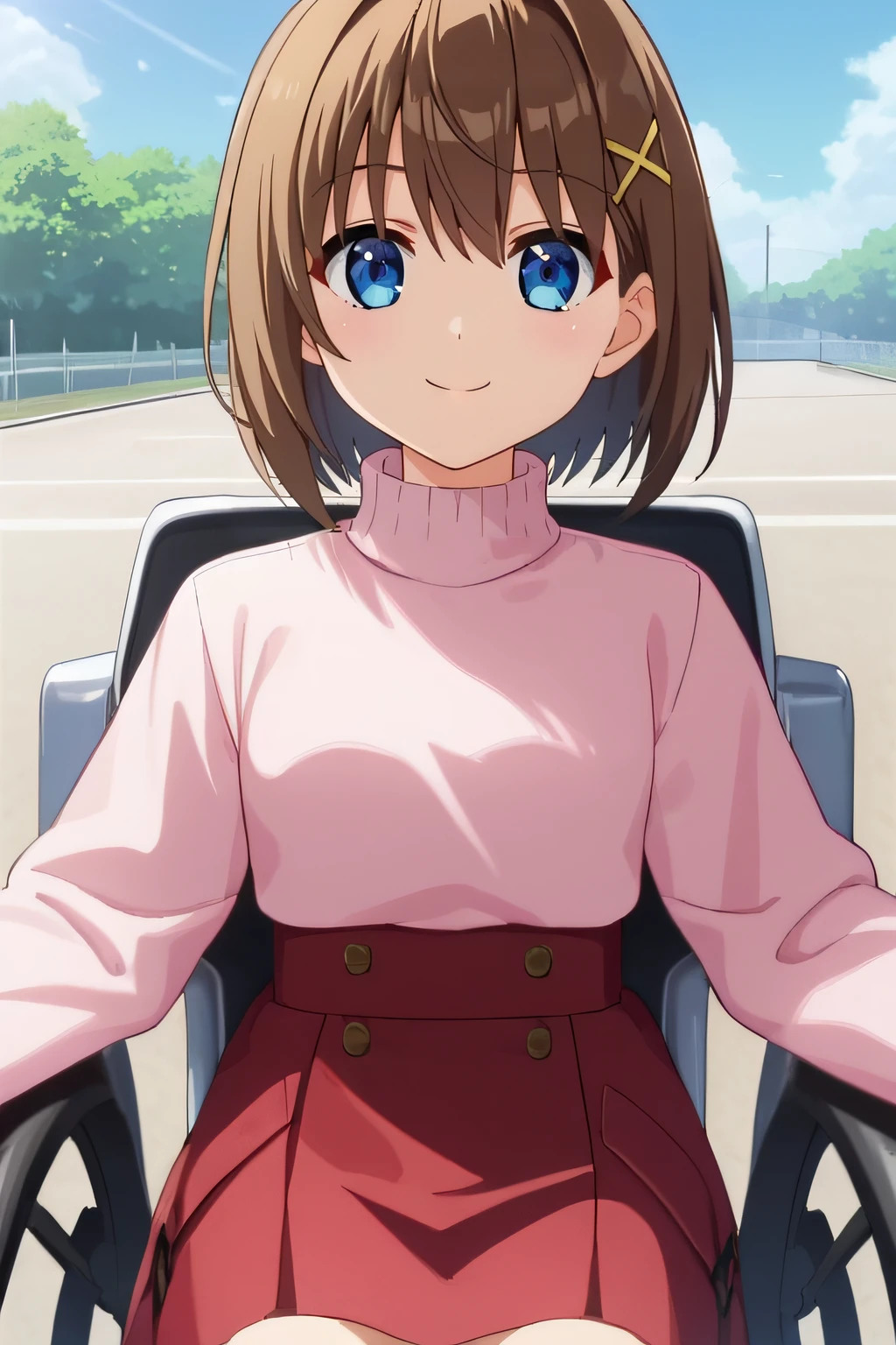 hayate, brown hair, blue eyes, hairclip, x_hair_ornament