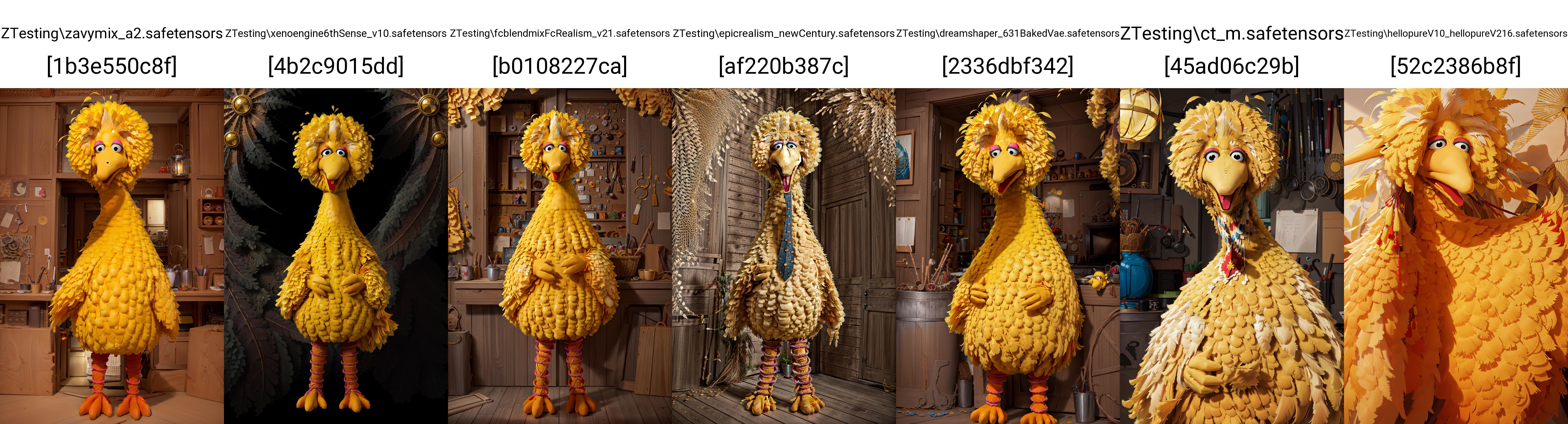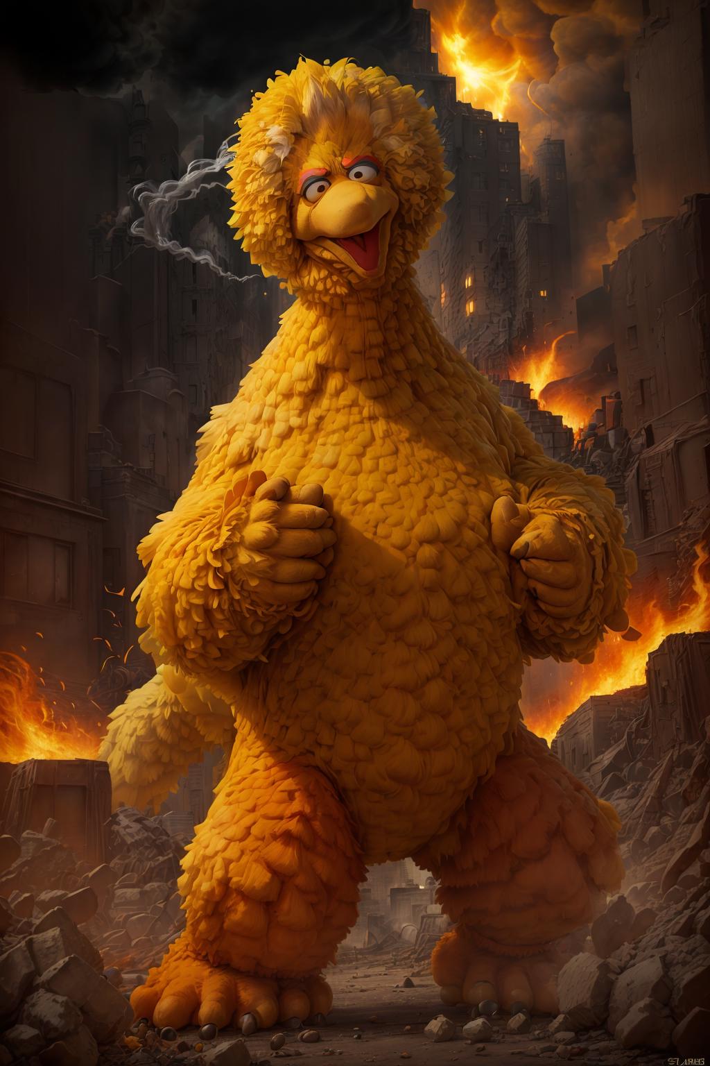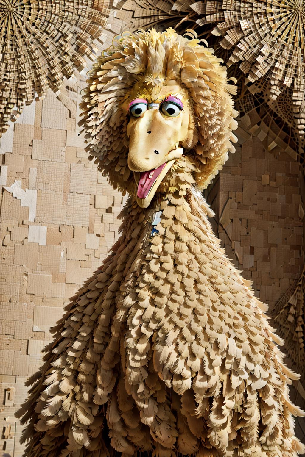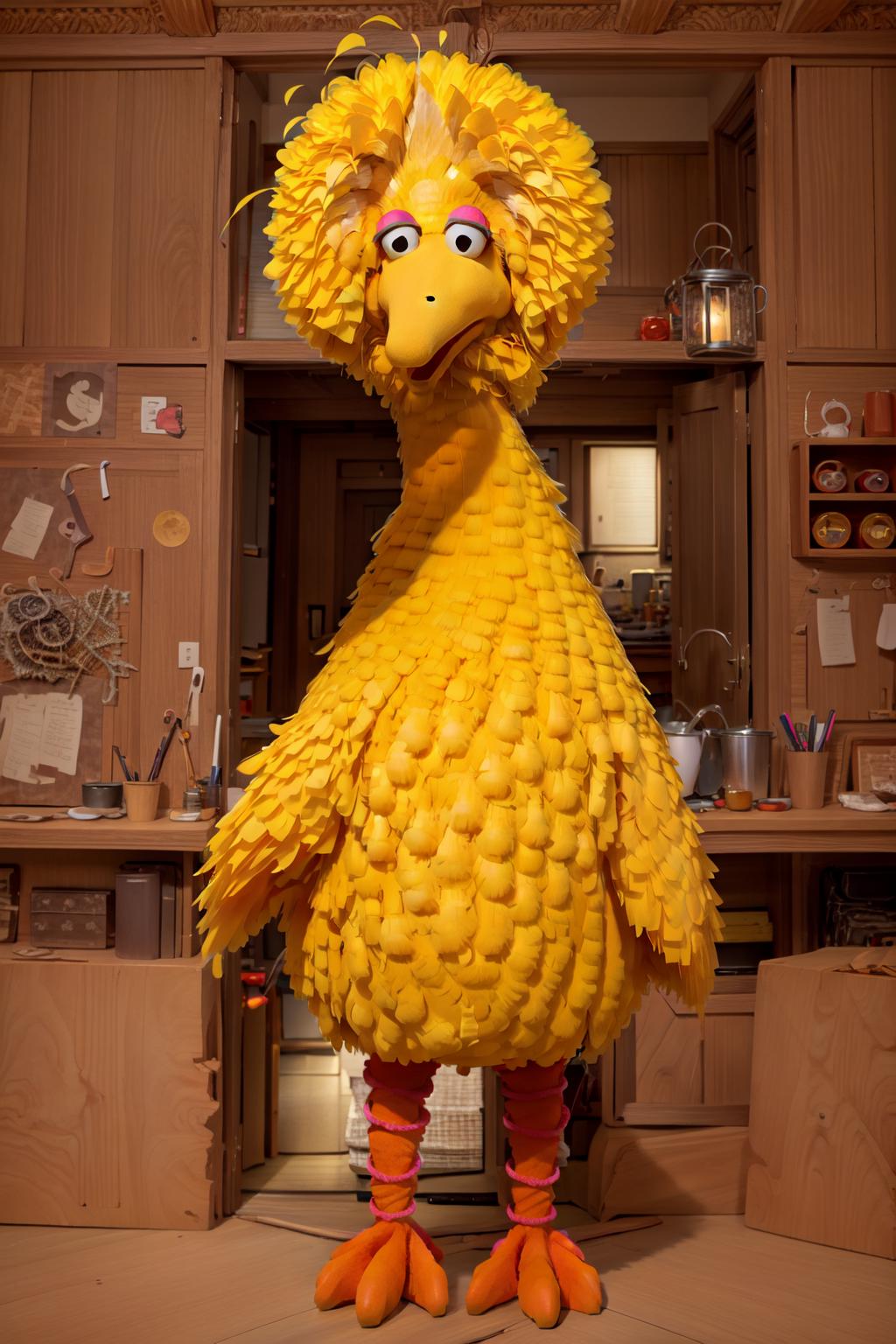Big Bird is a Muppet character designed by Jim Henson and built by Kermit Love for the long-running children's television show Sesame Street. An eight-foot two-inch (249 cm) tall bright yellow anthropomorphic bird, he can roller skate, ice skate, dance, swim, sing, write poetry, draw, and ride a unicycle. Despite this wide array of talents, he is prone to frequent misunderstandings.