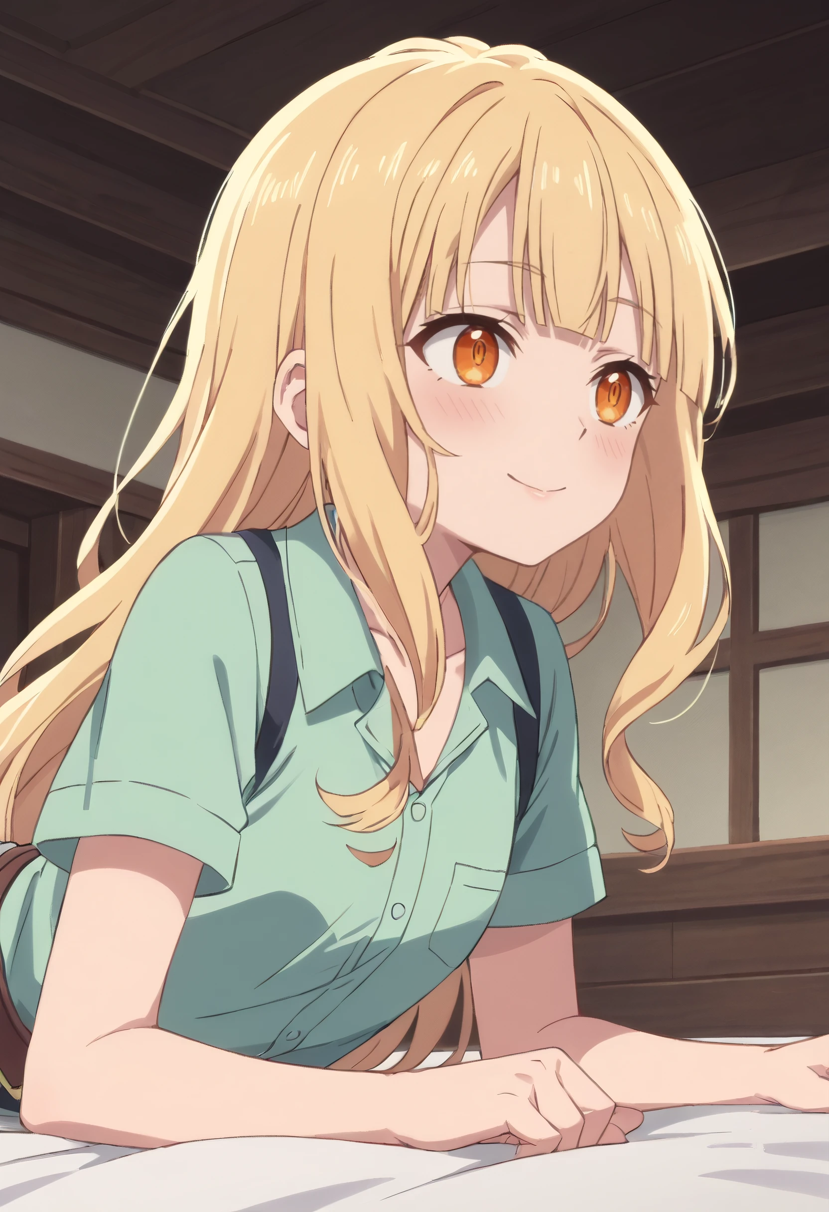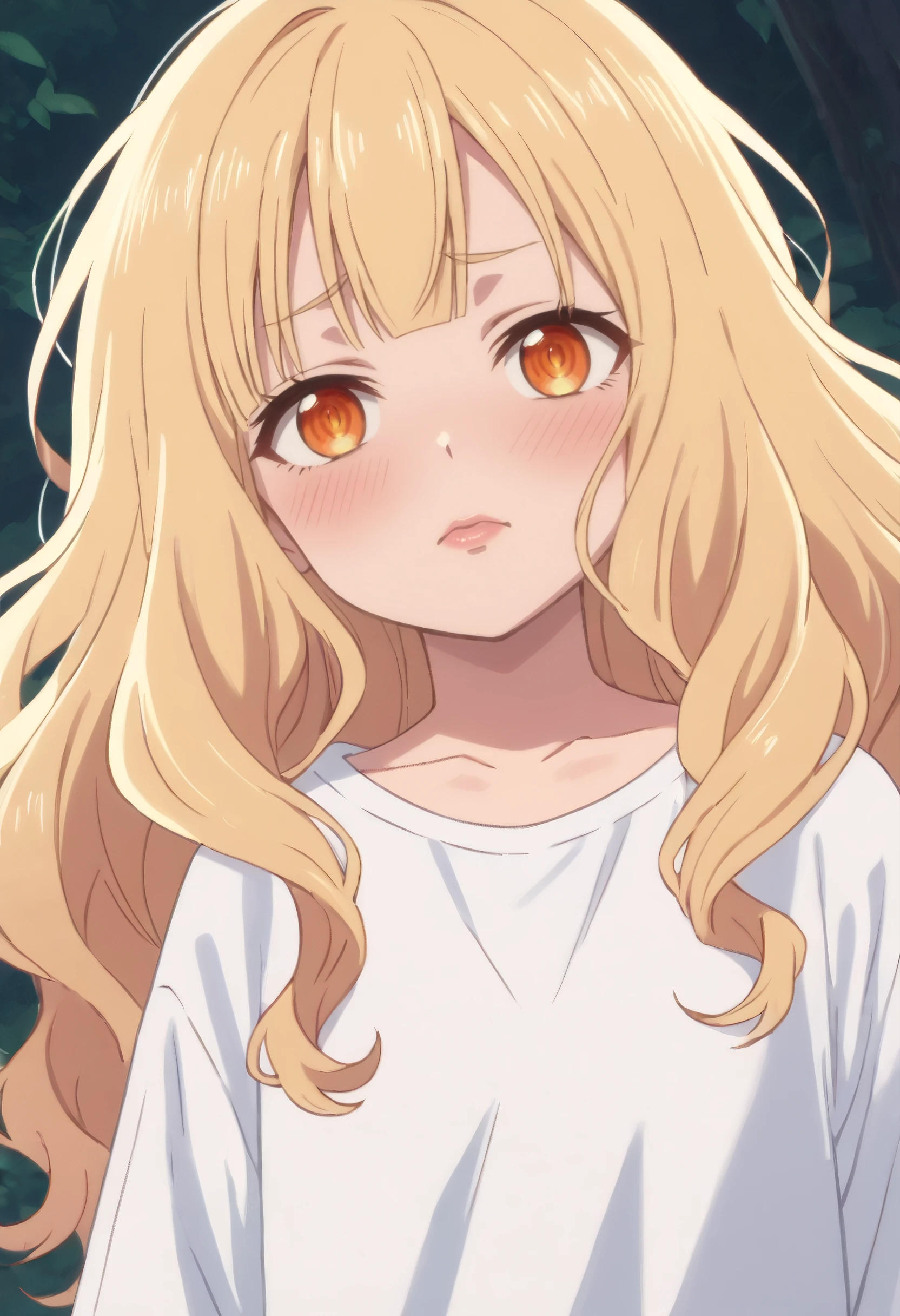 BGFReeze, blonde hair, bangs, eyebrows visible through hair, long hair, orange eyes, blunt bangs,