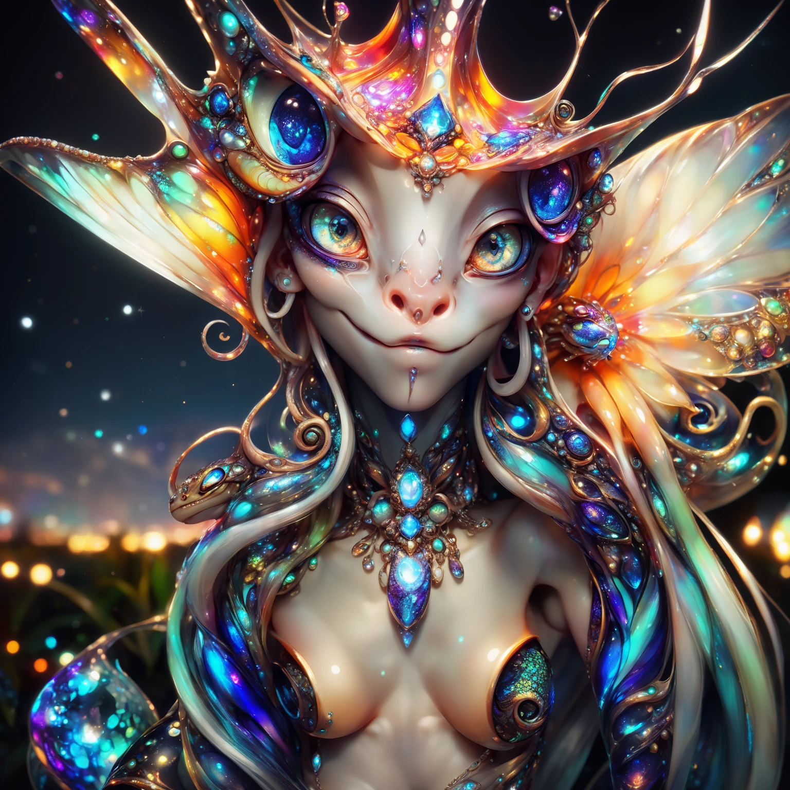 Elaborate prompts will most likely override the style. Start with something simple and go from there. Adding "aiai-DiscoLucid" to the prompt will enhance the style. There are more trigger words, but I've forgotten most of them; do experiment and see what works. Most likely the word "alien" will do something.