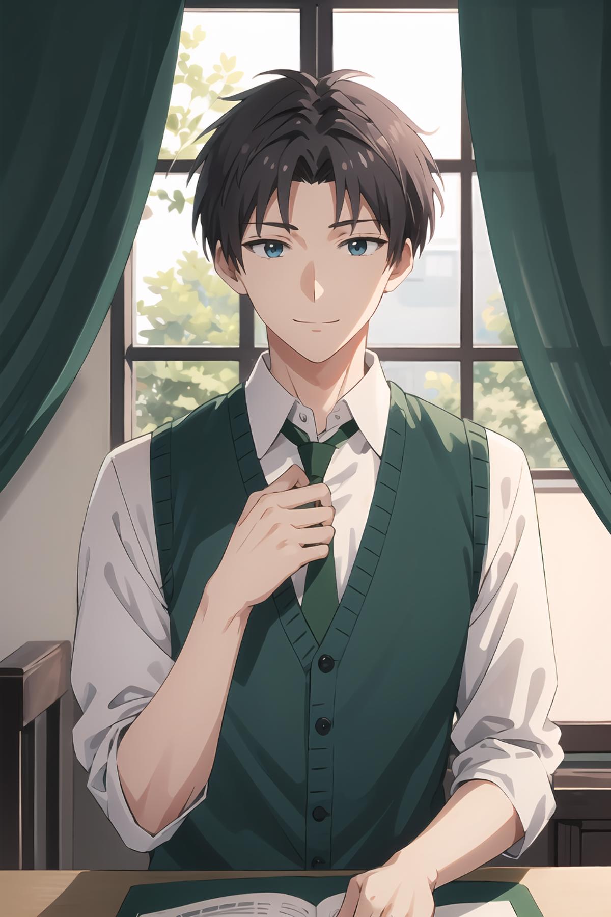 wakamatsu hirotaka\(nozaki-kun\), purple hair, blue eyes,