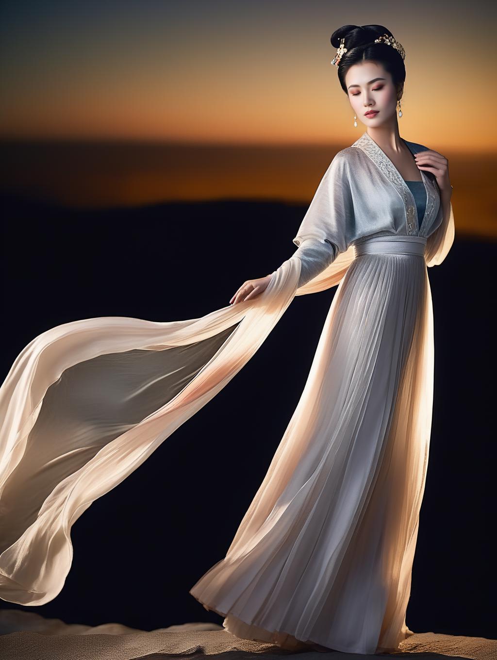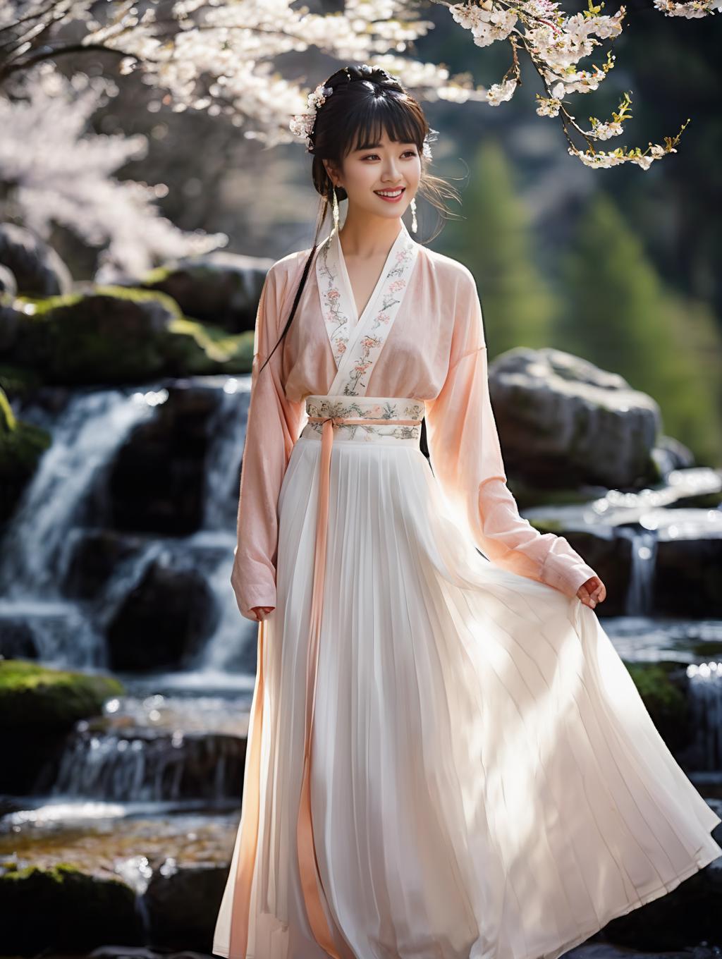 可以通过在关键词里添加beizi,画出宋服里的褙子;short beizi 画出短褙子;wide sleeve画出大袖,narrow sleeve画出窄袖;shan 画出交领衫或裙掩衣的上衣;belts 画出腰带;shawl 画出披帛,xiapi 画出霞披;pleated skirt 画出百褶裙;