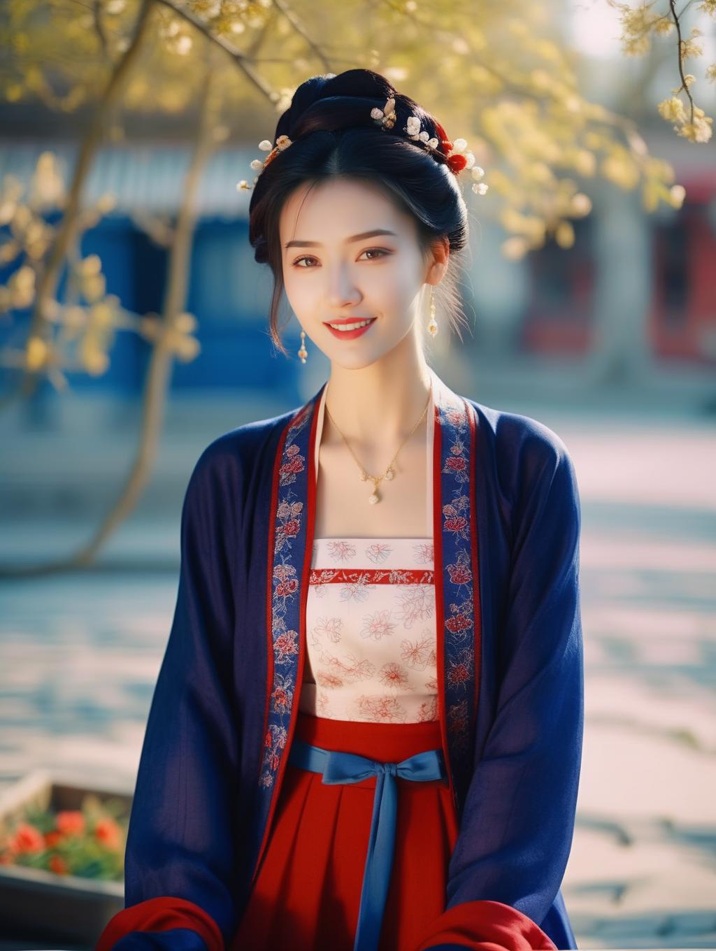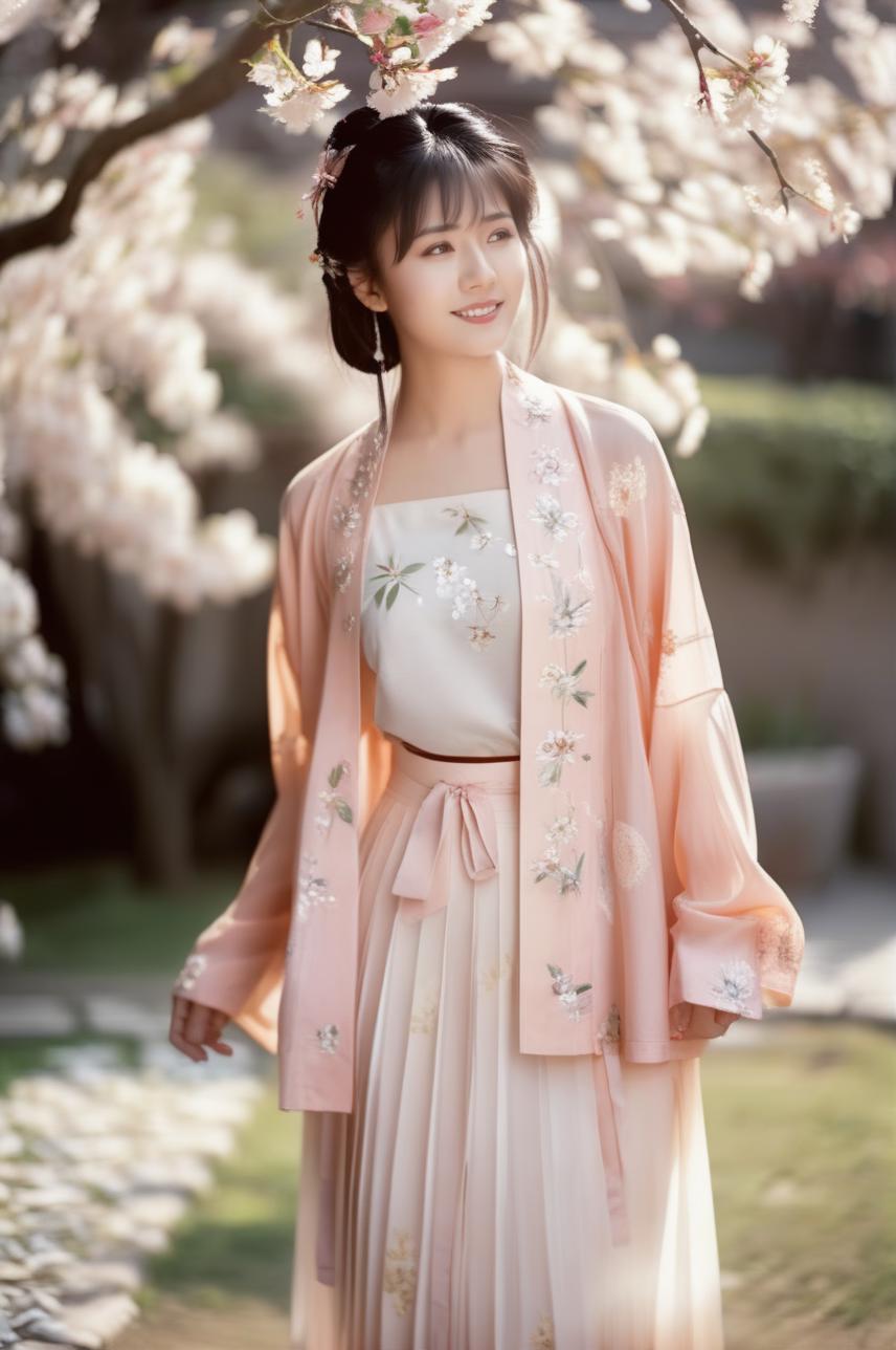 You can add “beizi” in the keywords to generate 褙子; “short beizi” for 短褙子; “wide sleeve” for 大袖, “narrow sleeve” for 窄袖; “shan” for 交领衫或裙掩衣的上衣 ; “belts” for 腰带; “shawl” for 披帛, “xiapi” for 霞披; “pleated skirt” for 百褶裙.