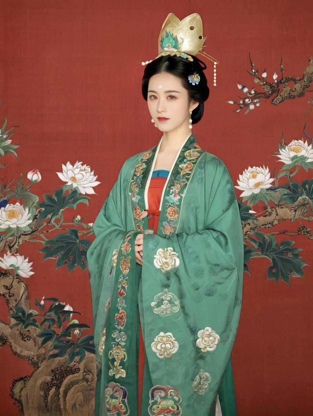 另外,还可以通过with a guan on her head画出宋冠(但是冠出图的概率比其他样式低,数据集里冠的图太少了,只是顺带着训了训。)
