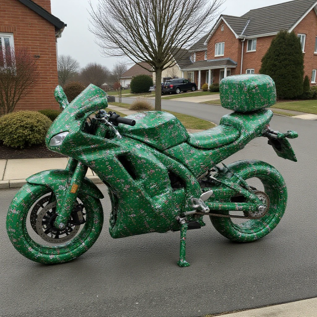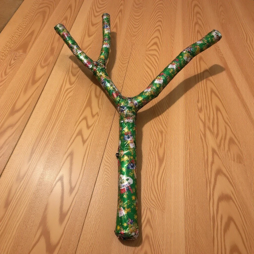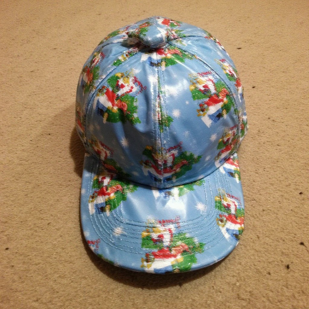 a (dimly/well) lit (high/low) photograph of a ff-gift (item/object) wrapped for christmas. it is on (surface).
