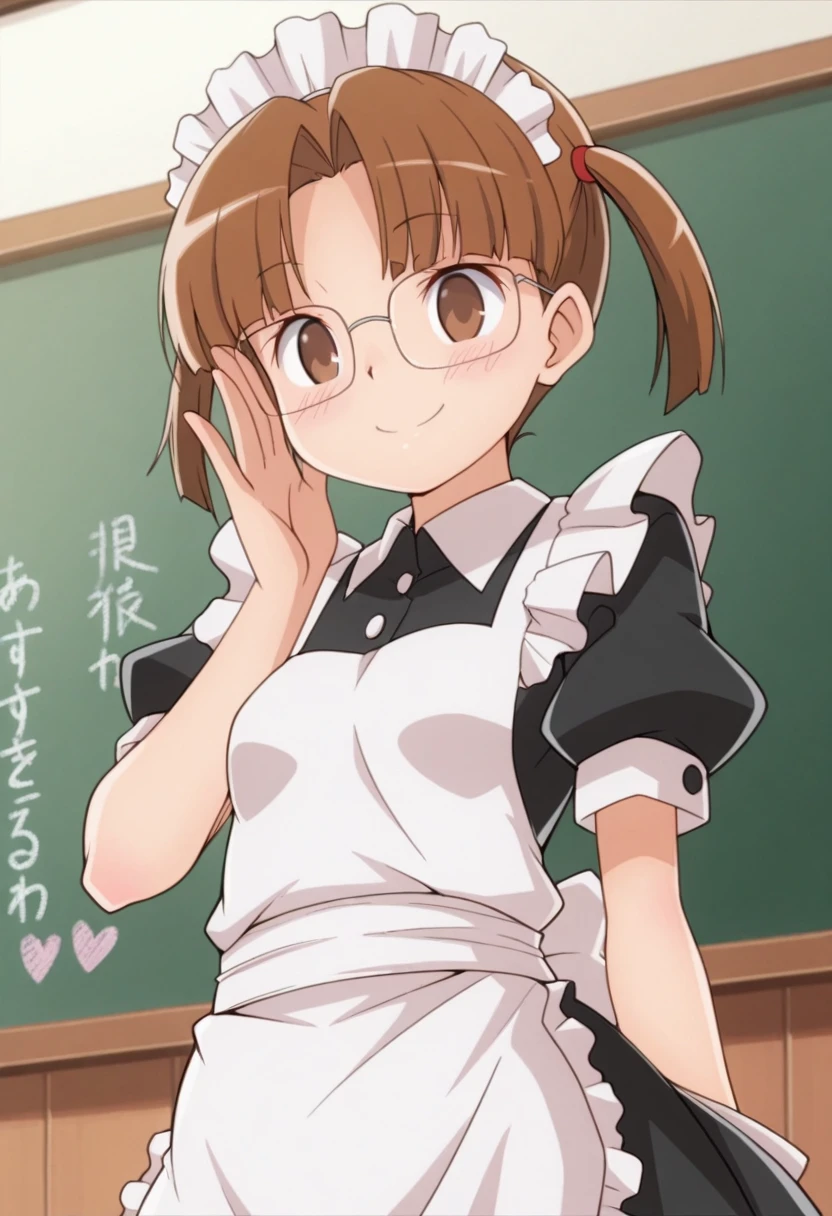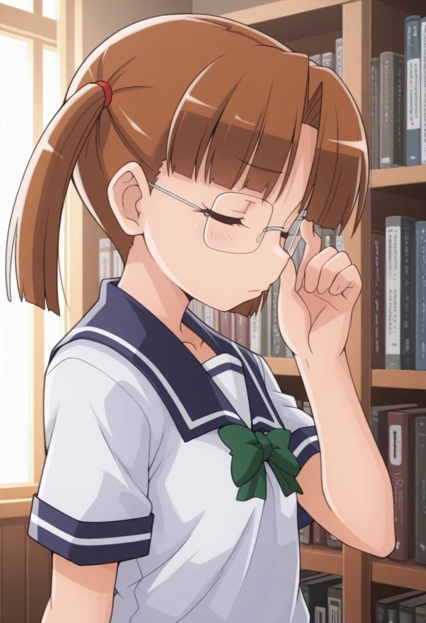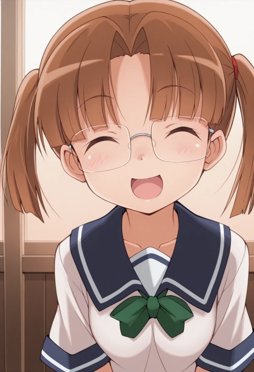 Trigger Words: shinmon yayoi, brown hair, brown eyes, twintails, glasses