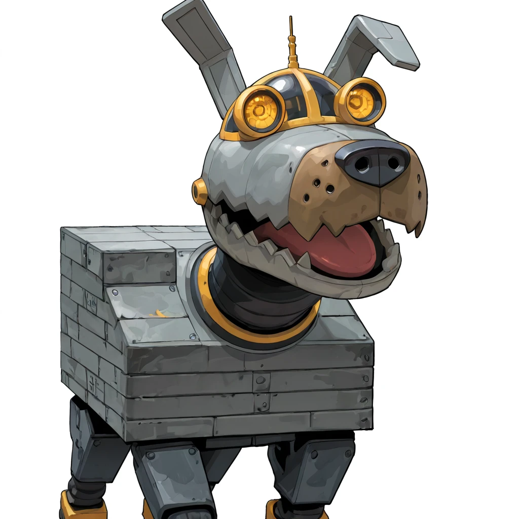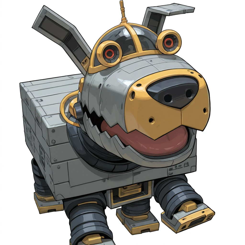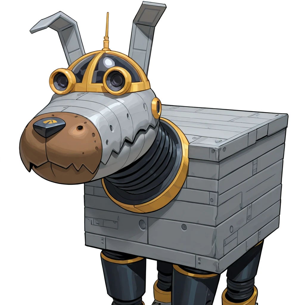GG_GODDARD, DOG, ROBOT, BOX TORSO, BROWN MOUTH, GREY HEAD, GREY FEET