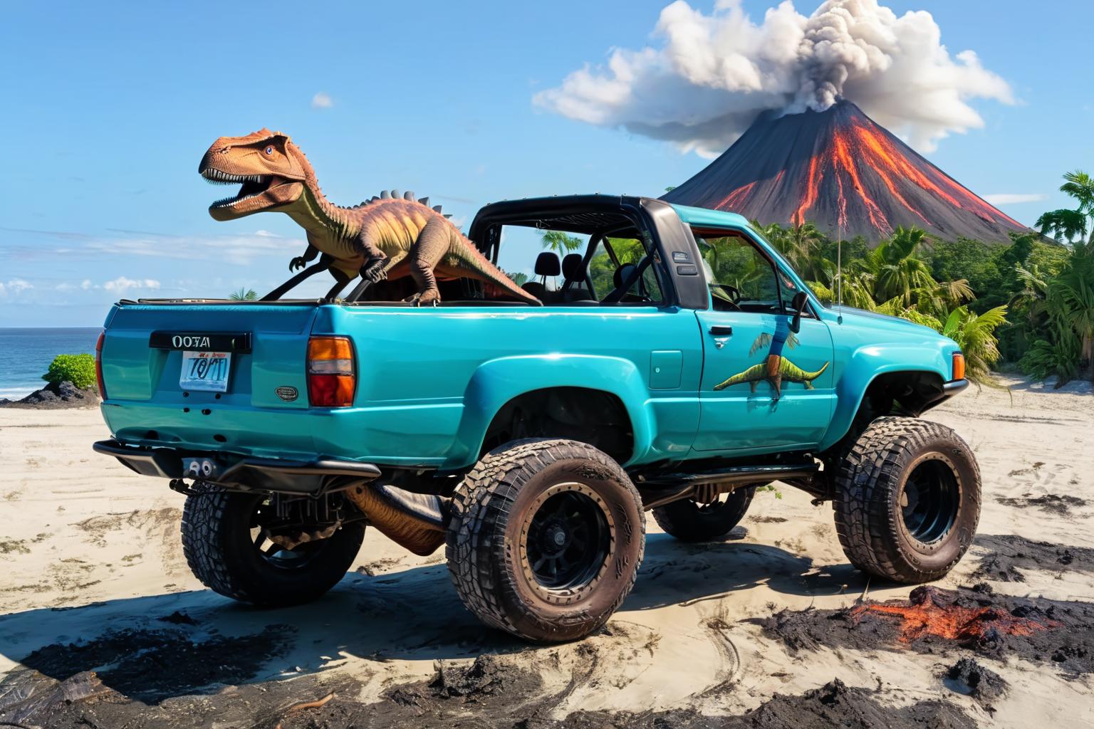 Helper: see the examples prompts, but in general you can vary the color of components (body, topper, wheels, grill, bumper) with some fiddling. Also, lifted vehicles can be generated with lifted, modified. The following view tags were used in training although it might be hard to generate images with these specific views: 'quartering away view', 'quartering in view', 'front view', 'rear view', 'side view'.