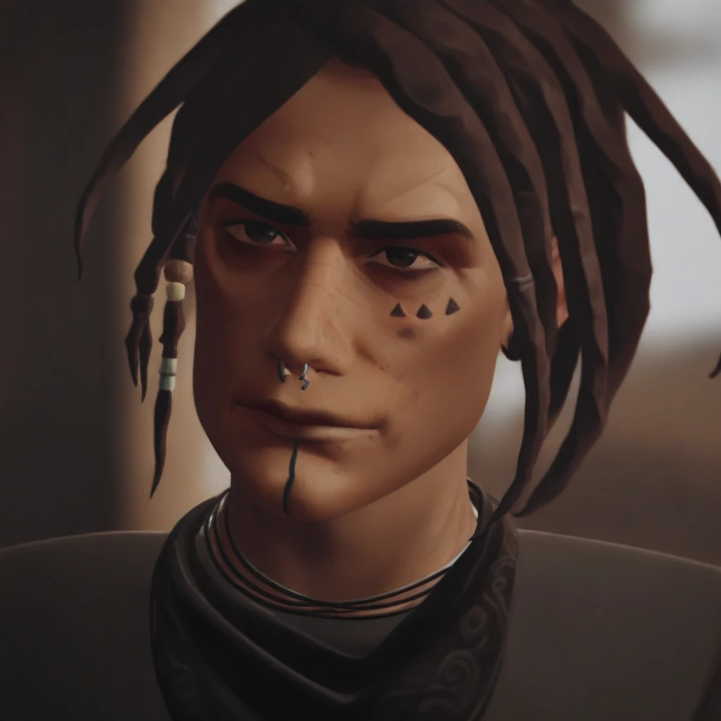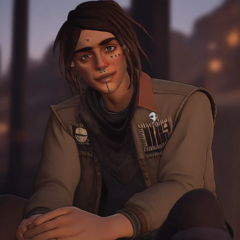 dreadlocks, jewelry, lip piercing, brown hair, dark-blue eyes
