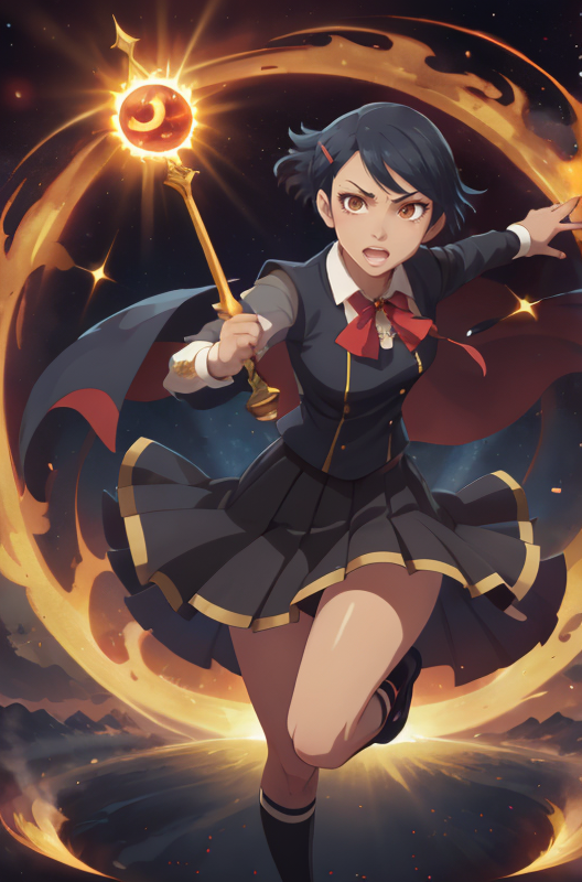 Tags: yukop3, short hair, hairclip, dark skin, brown eyes, black hair, gekkoukan high school uniform, skirt, socks, shoes
