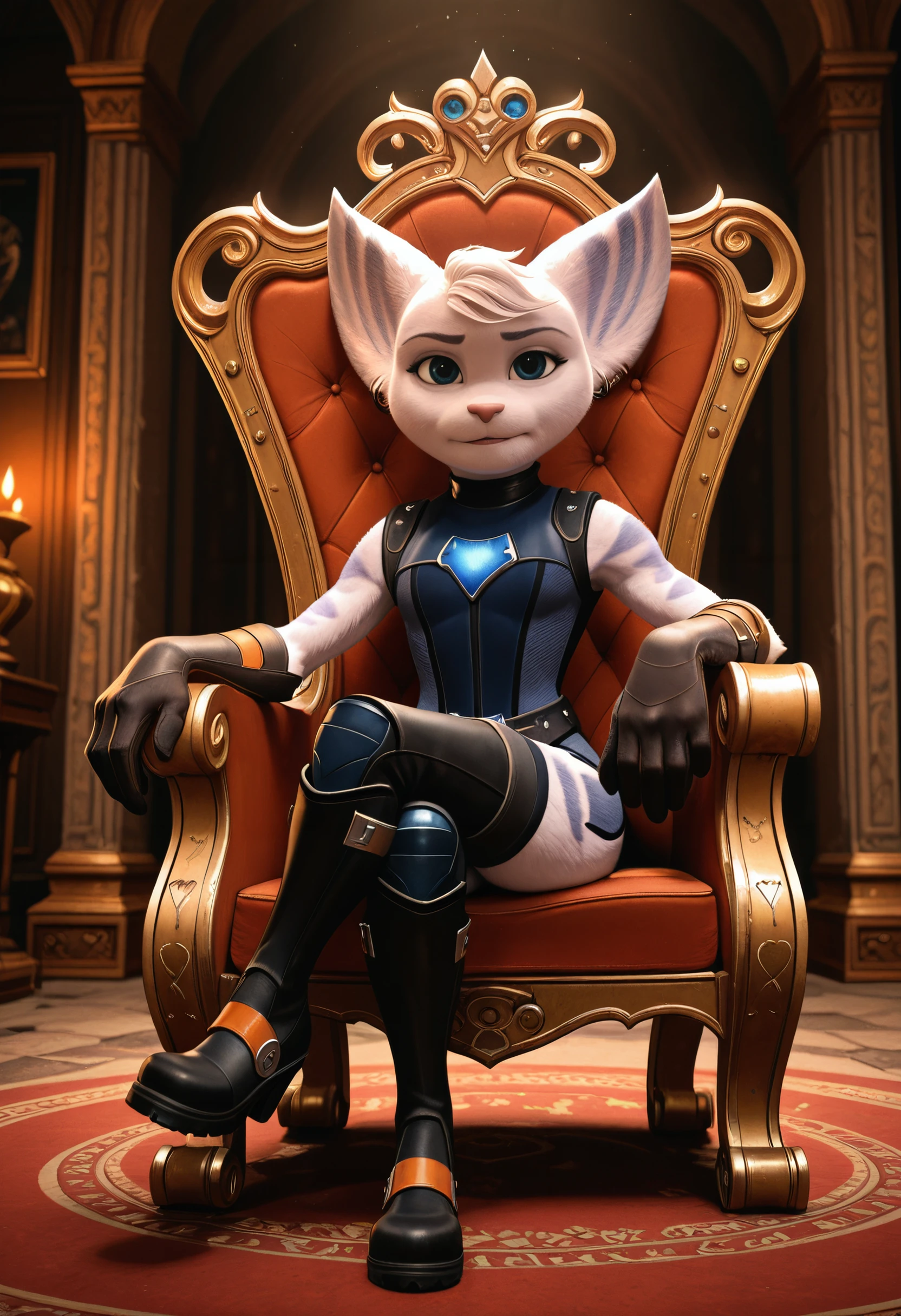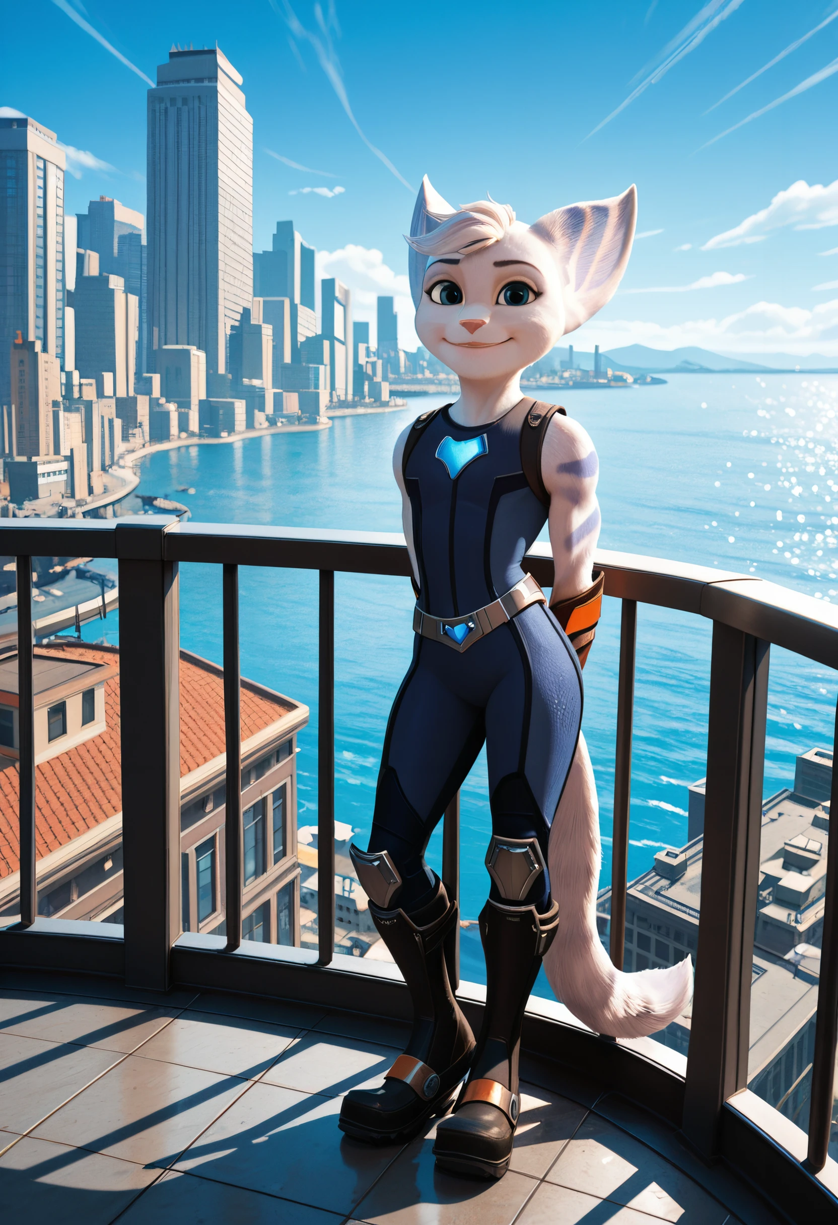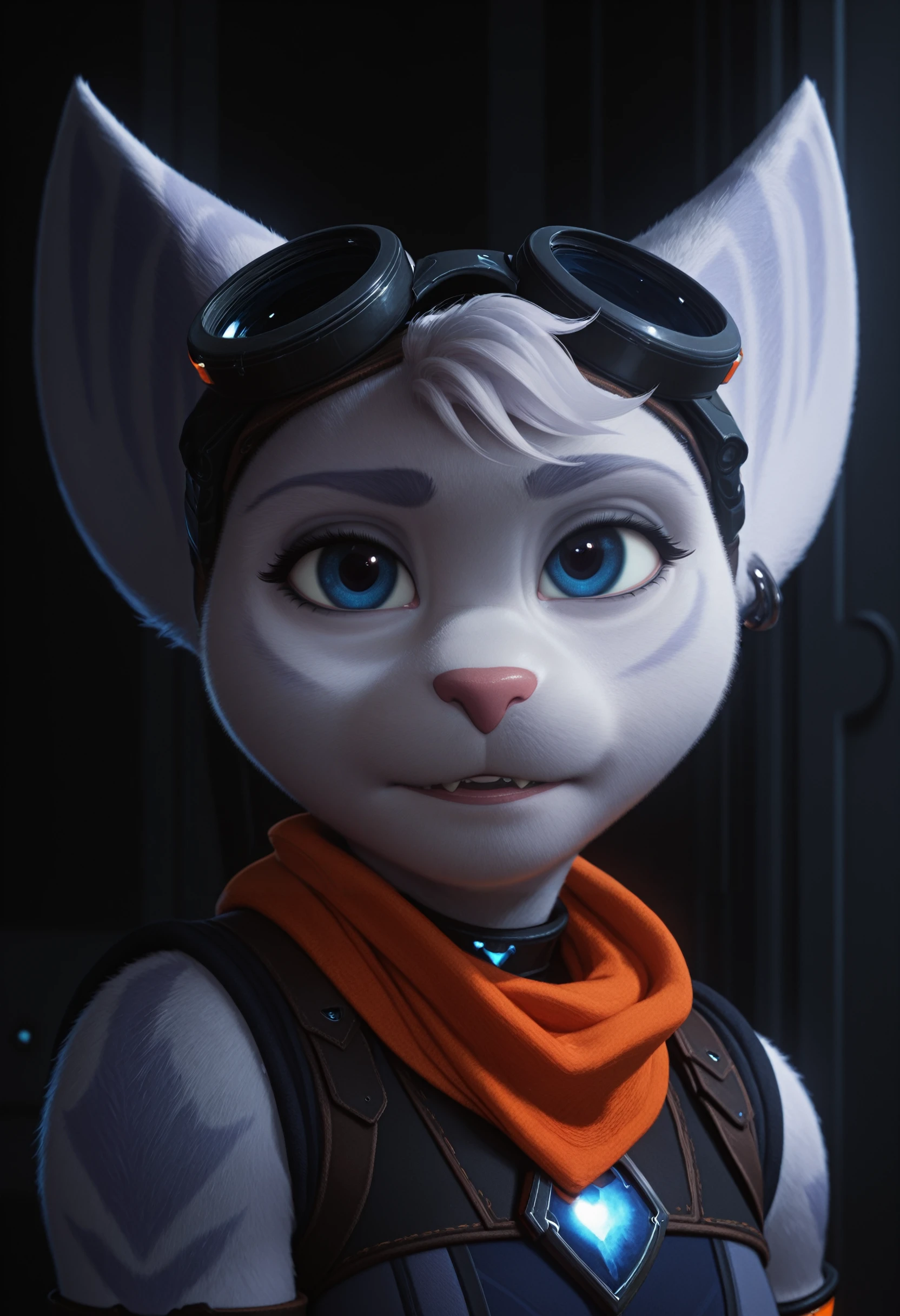 RatchetRivet, anthro, white fur, cat ears, blue eyes