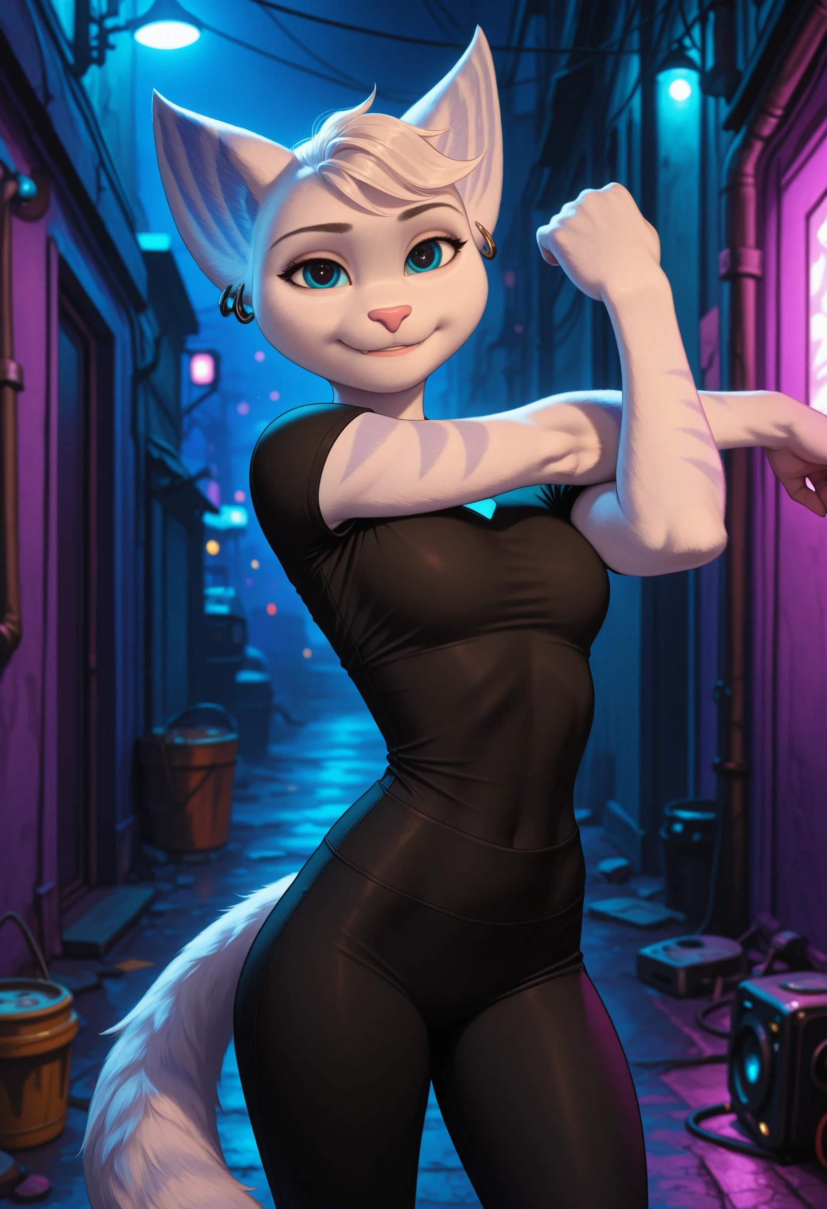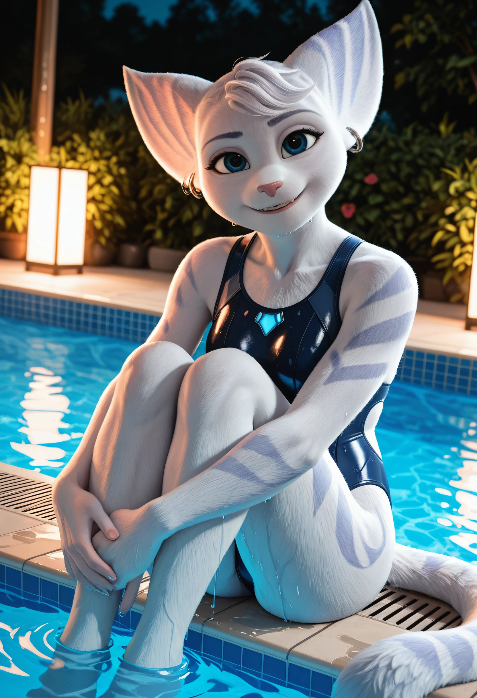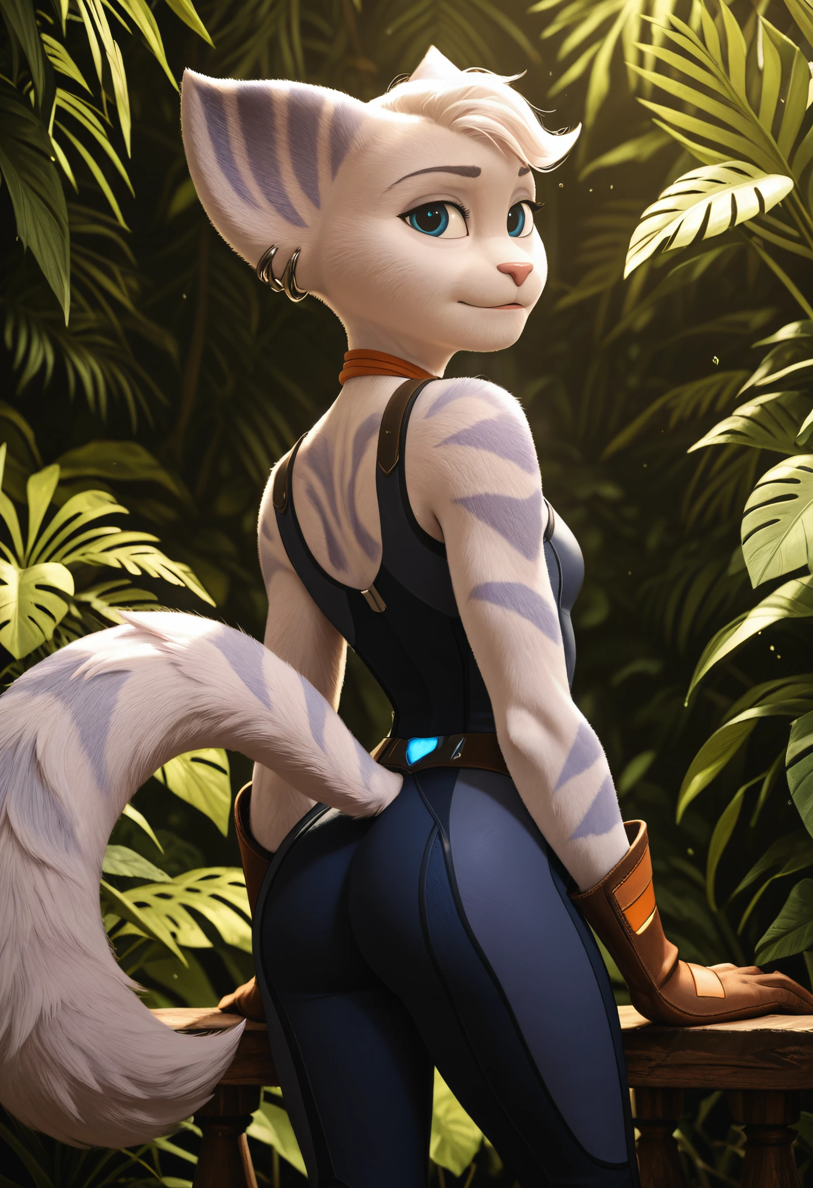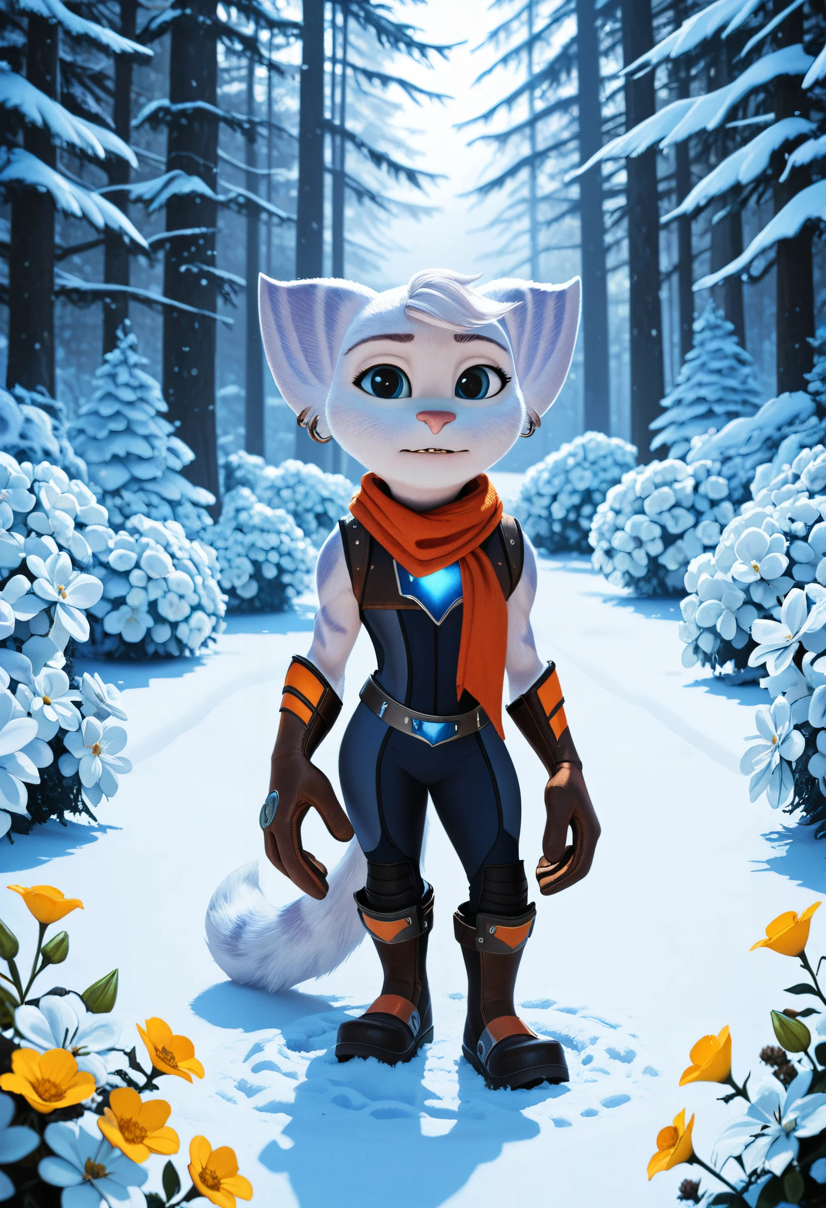 RatchetRivet, anthro, white fur, cat ears, blue eyes