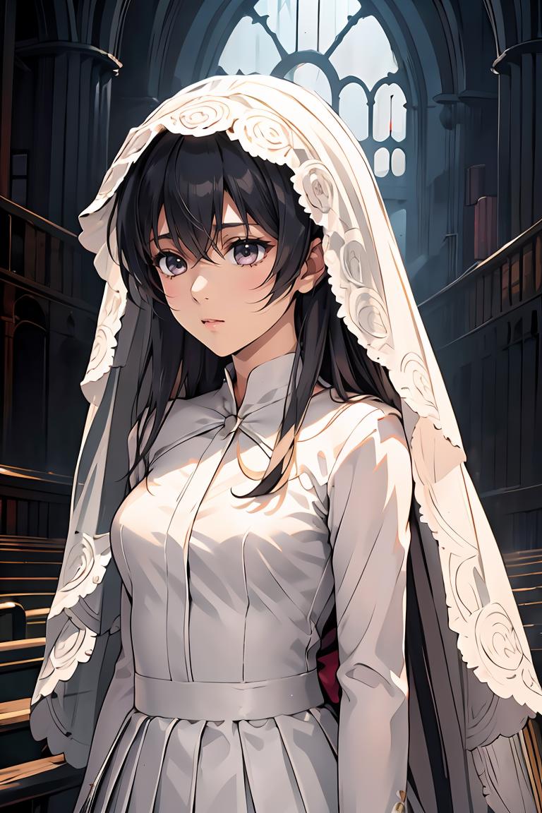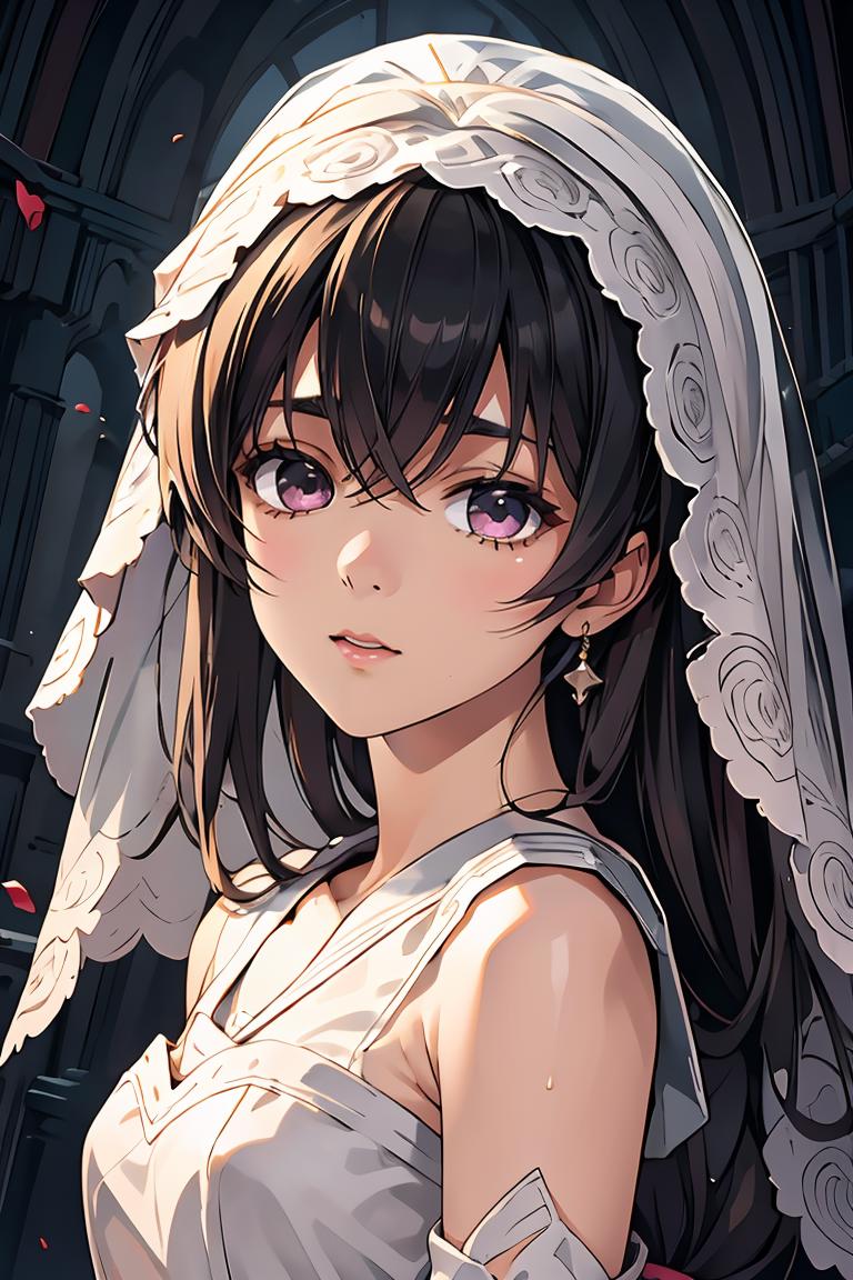 Weight: 0.6 Trigger words: zero hikari,bridal veil,veil,flower,flower on head,white hair, red eyes, white dress, bowtie,