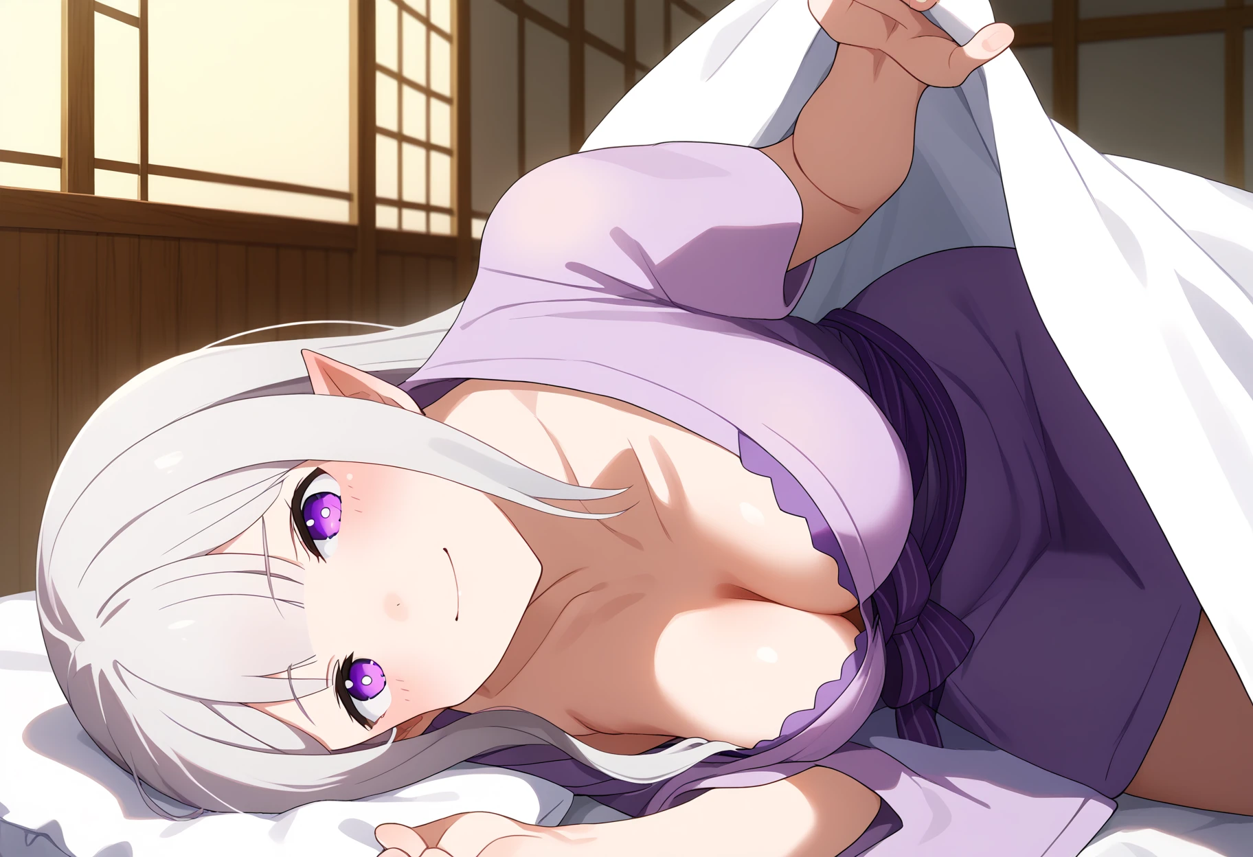 shiundercover, under covers, bed invitation, lying, on side, on bed, pillow,