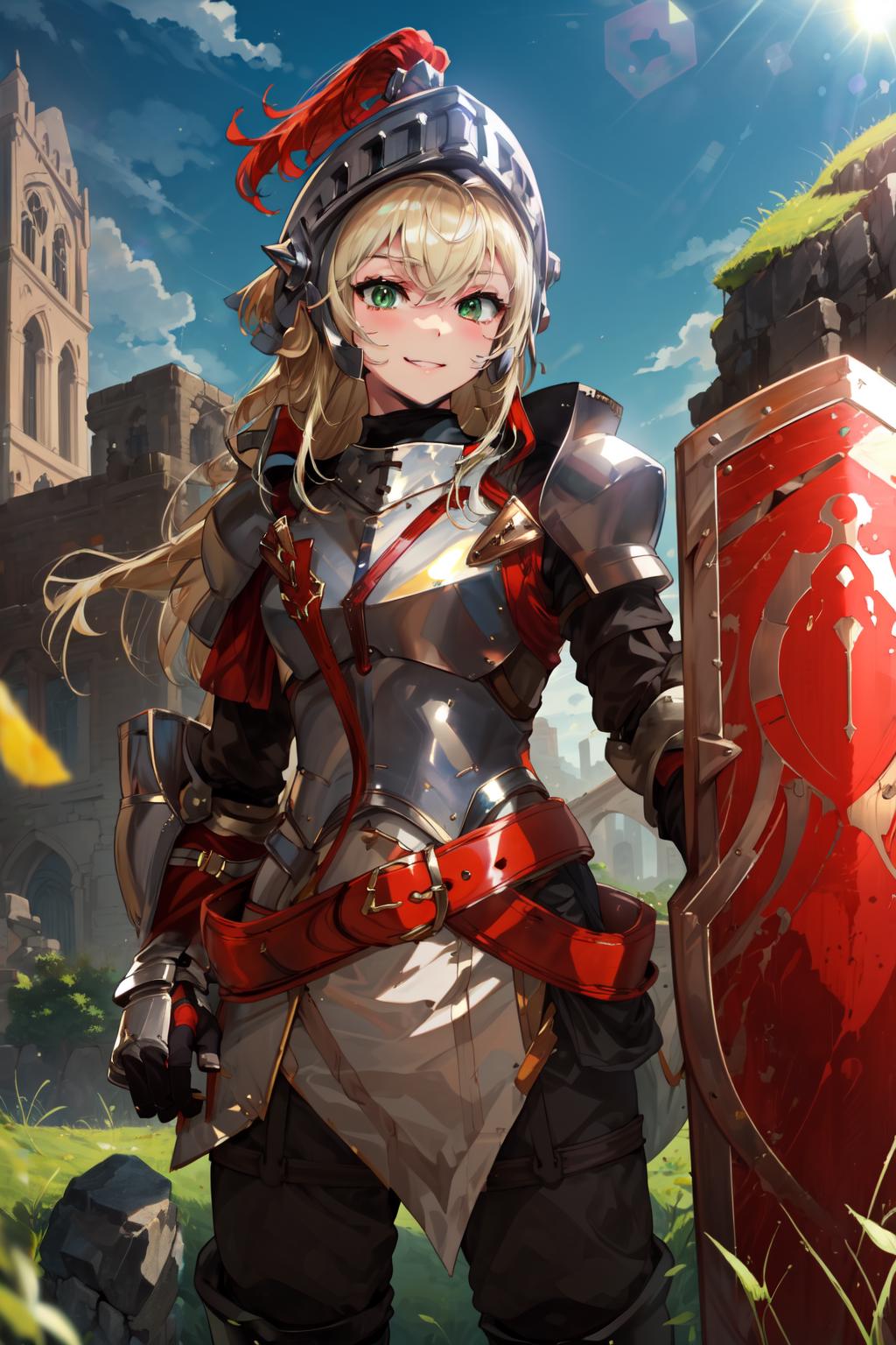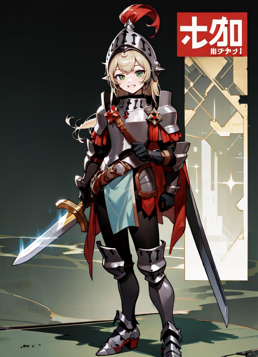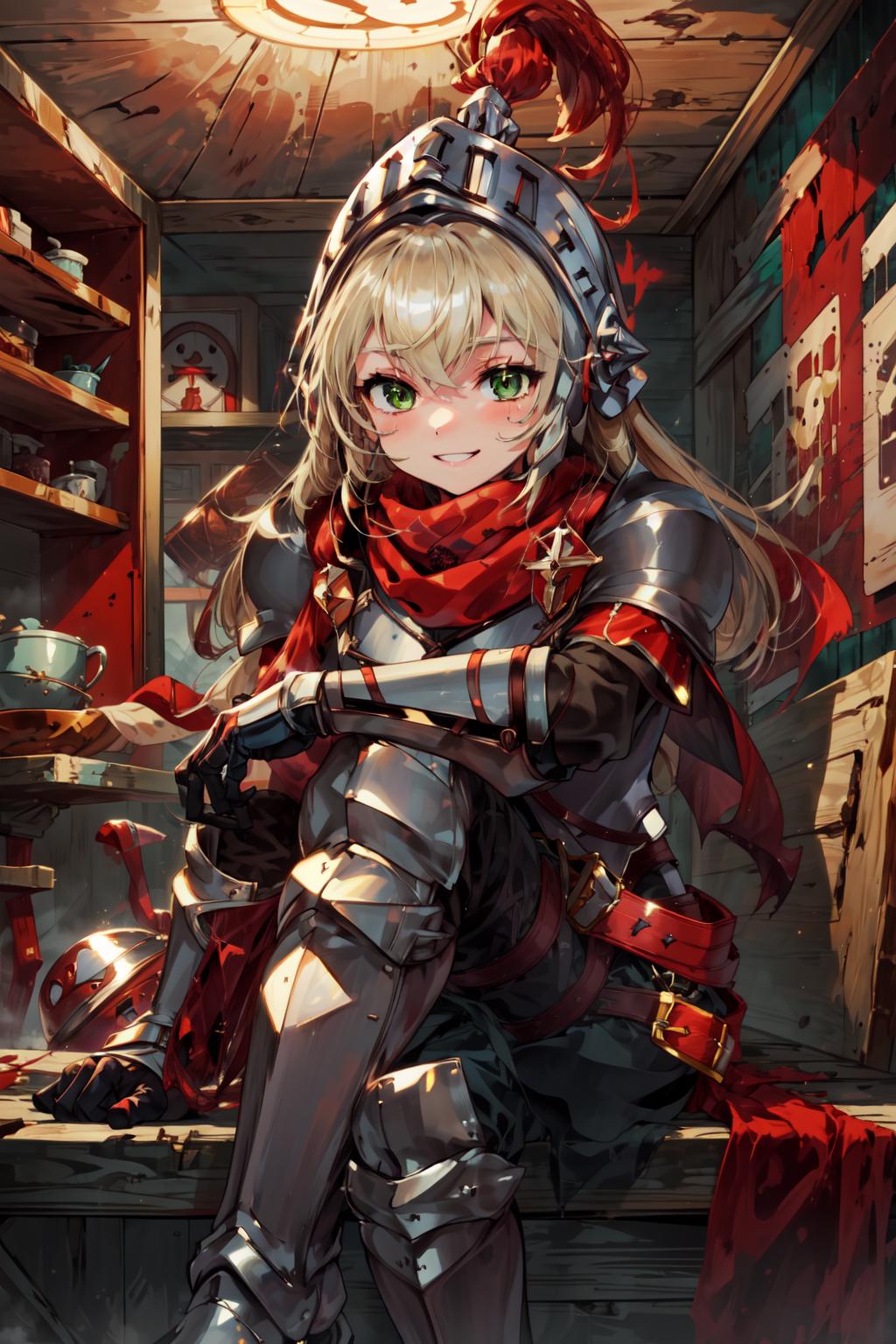 -the knight outfit: weapon, boots, belt, scarf, armor ,gauntlets