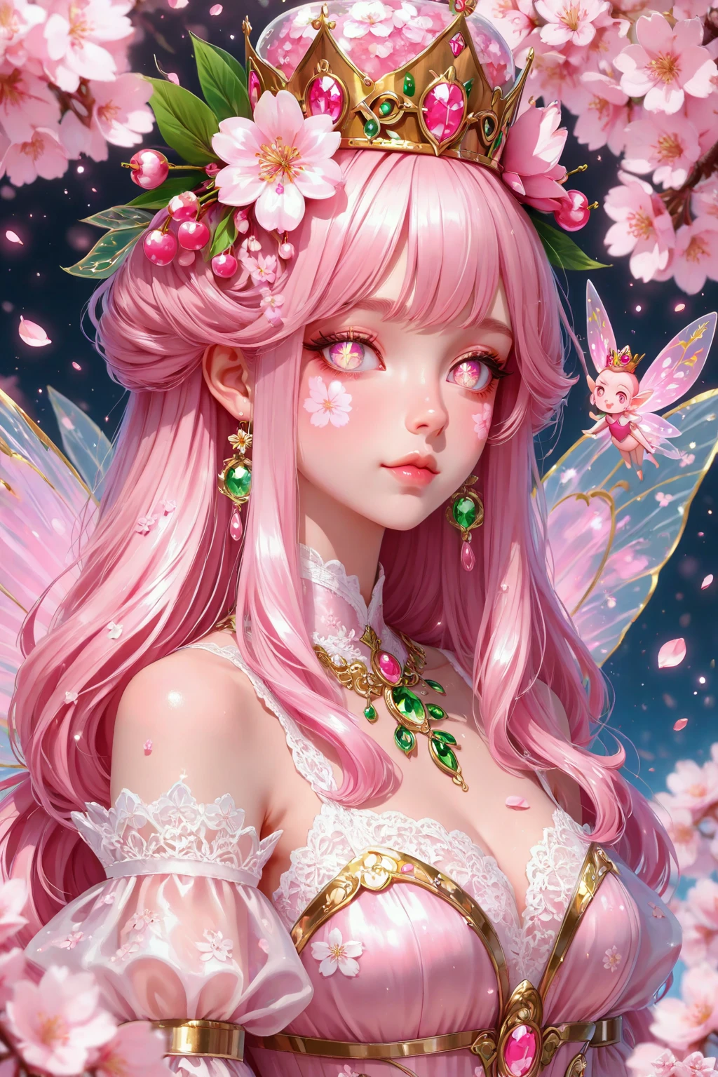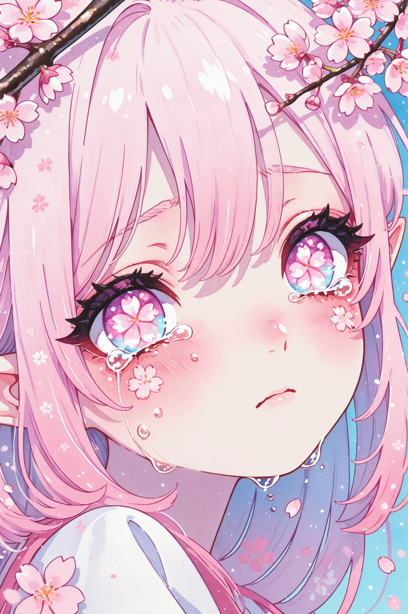 精准生成樱花眼(sakura_eyes),瞳中带花瓣、粉白渐变通透琉璃感