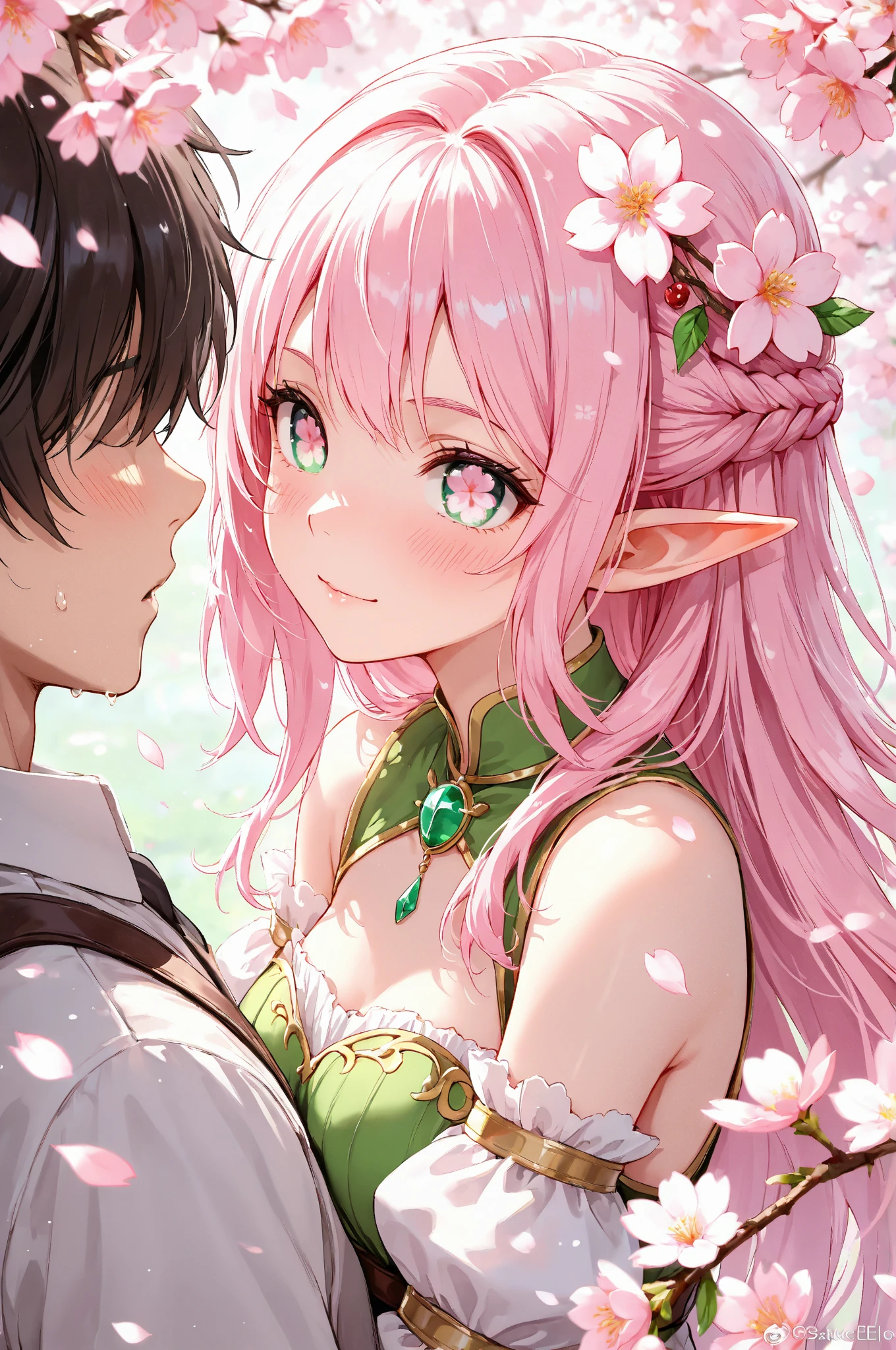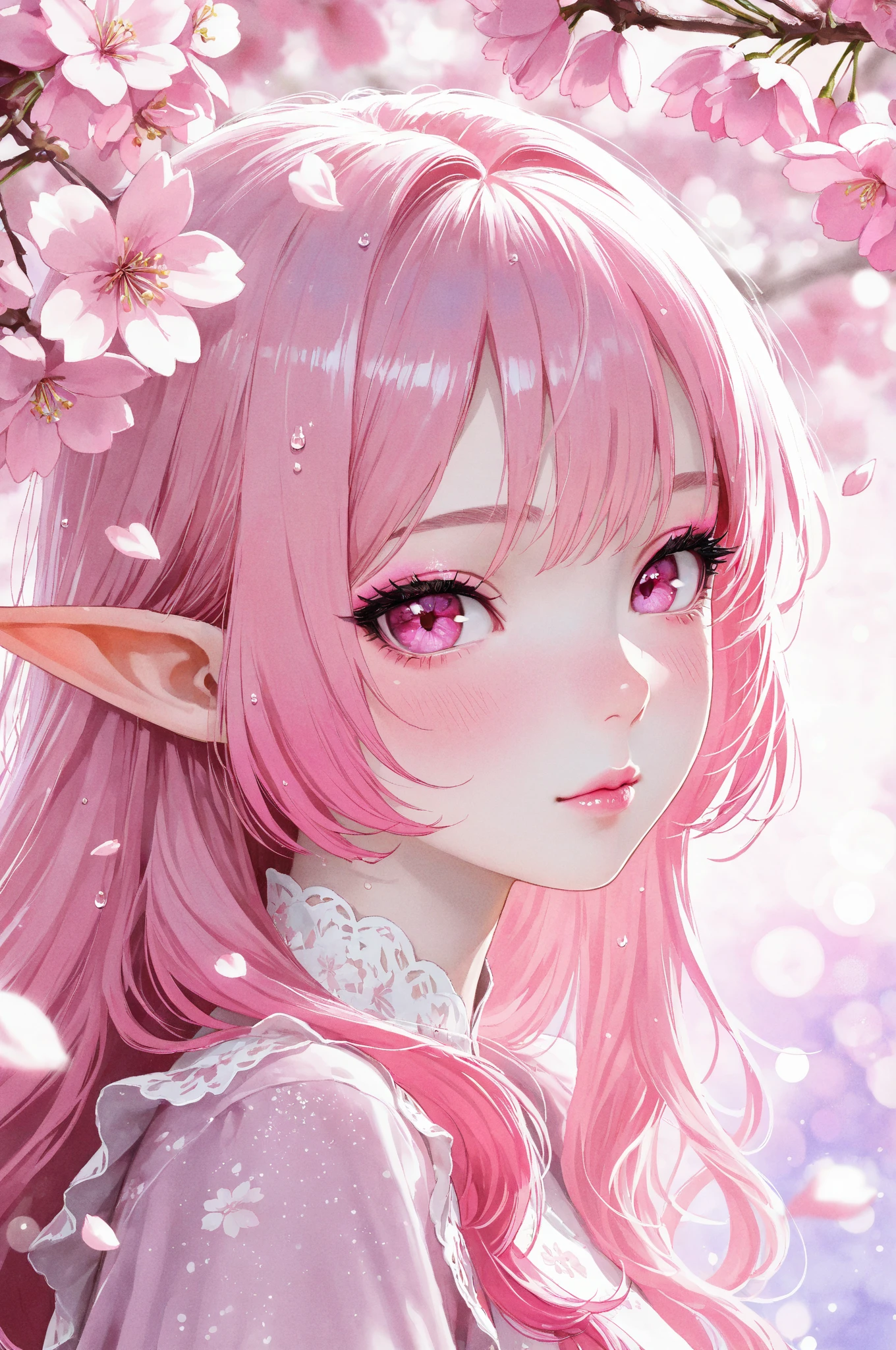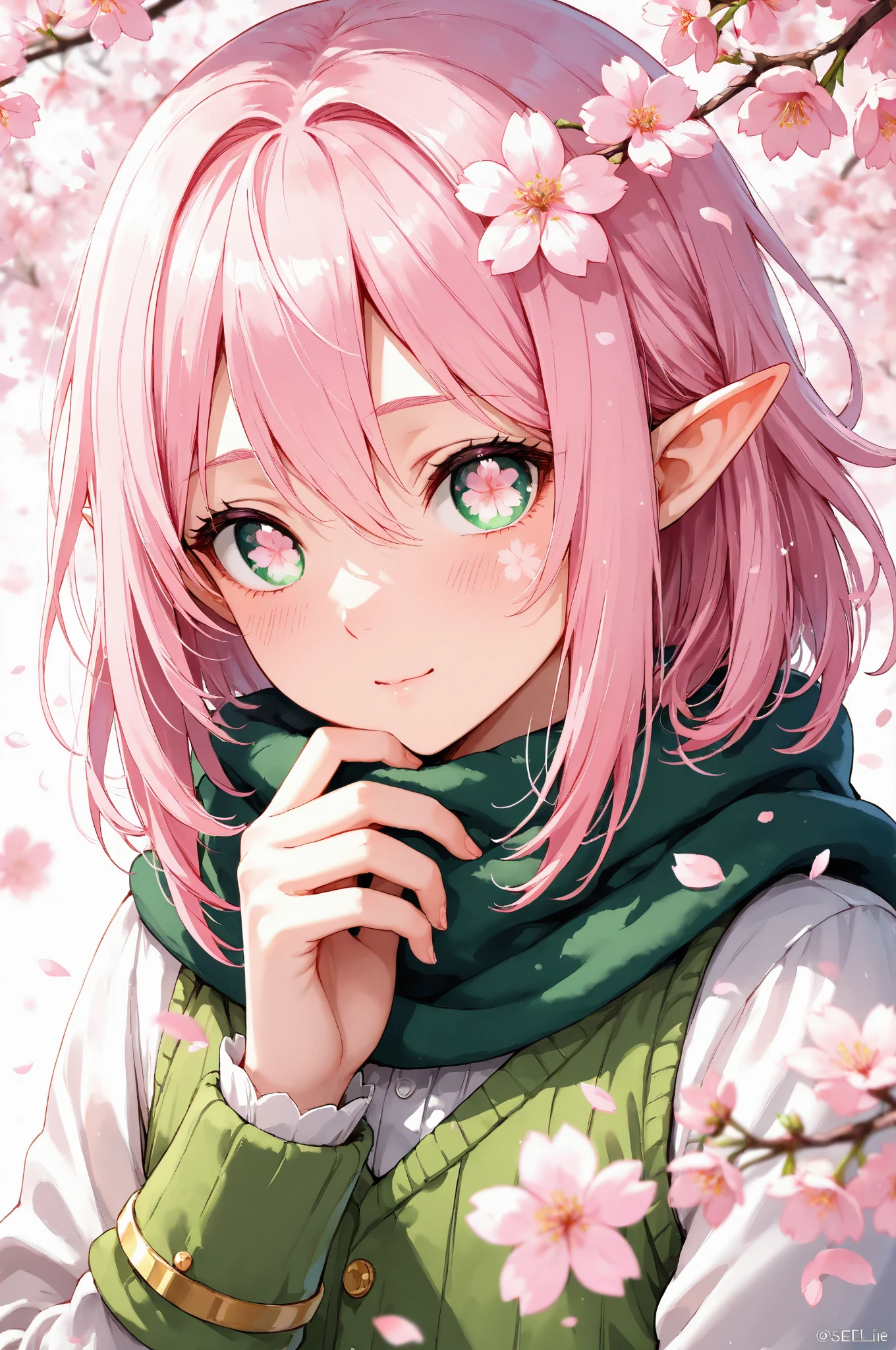 专为精灵耳少女 + 樱花眼眸设计的细节向 LoRA,