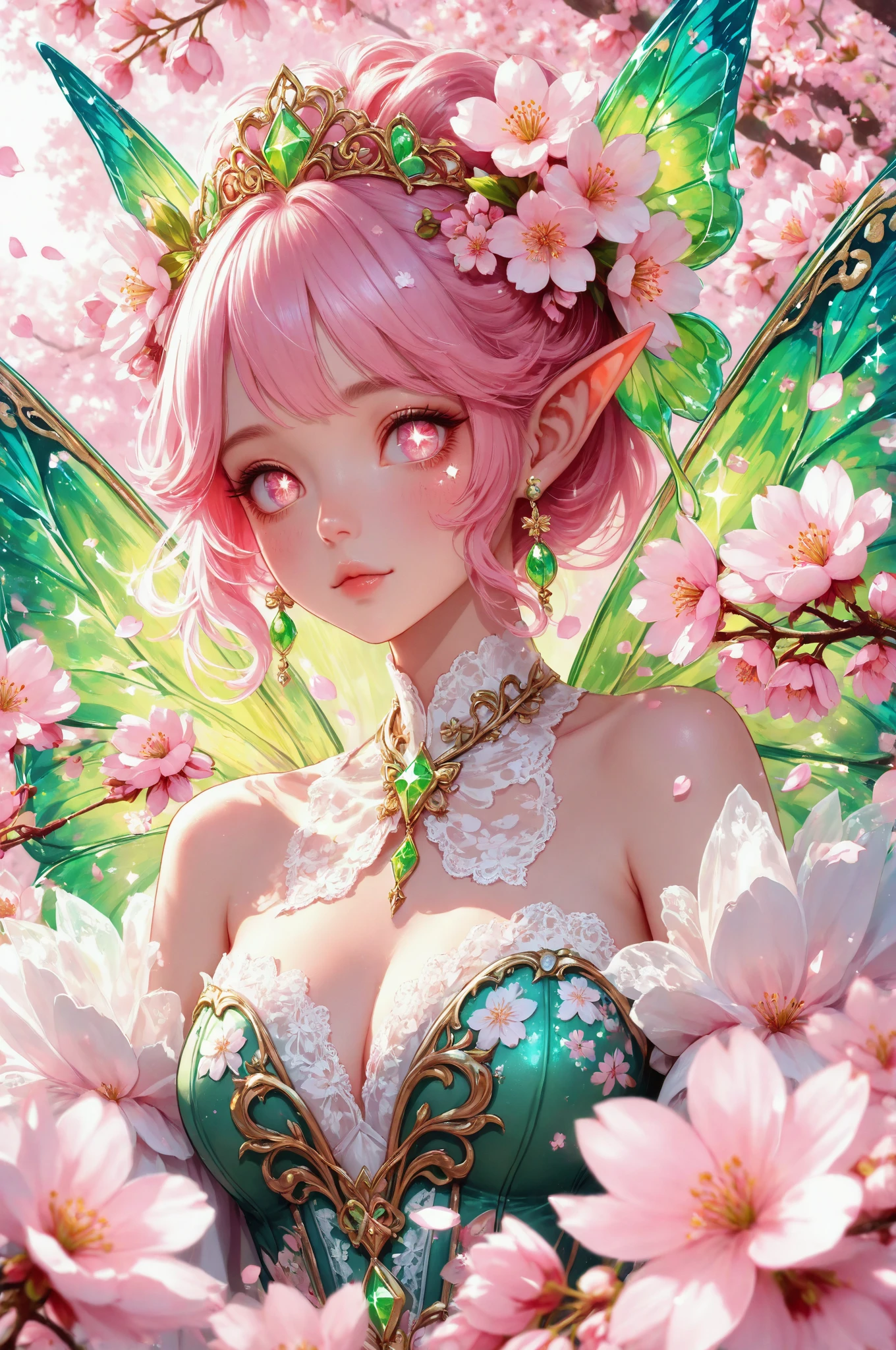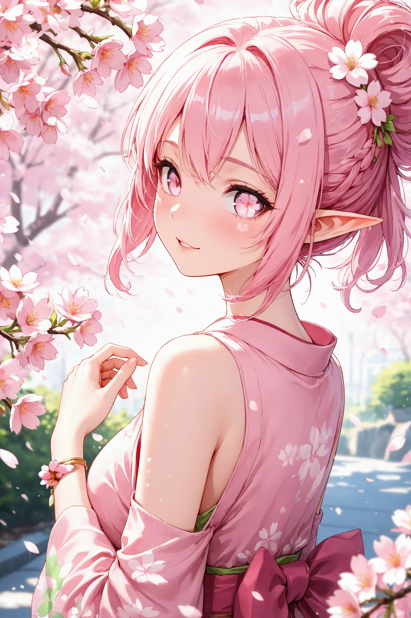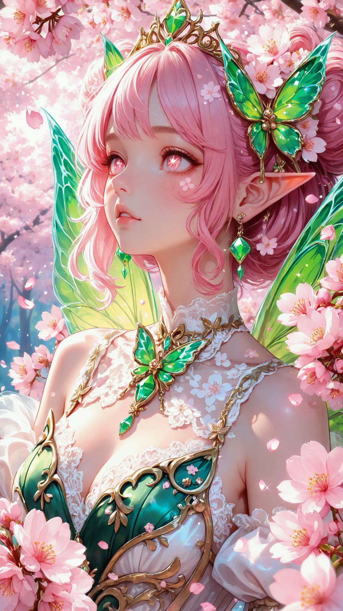 搭配精灵耳与春日樱花氛围,适配古风、水墨、二次元、唯美插画等多种风格。