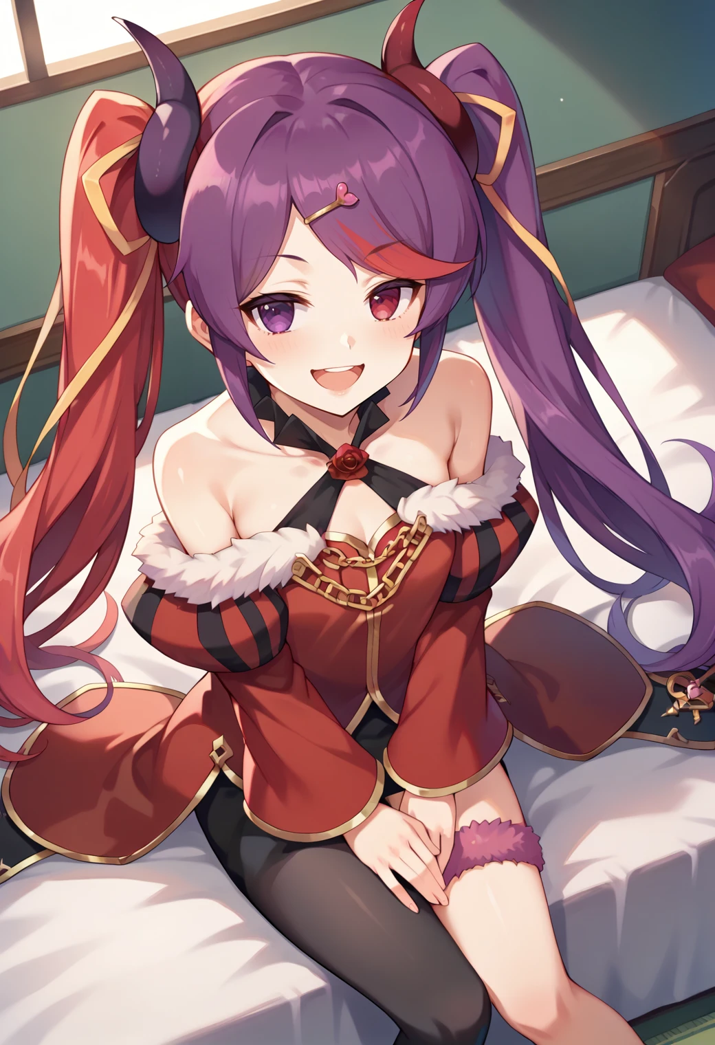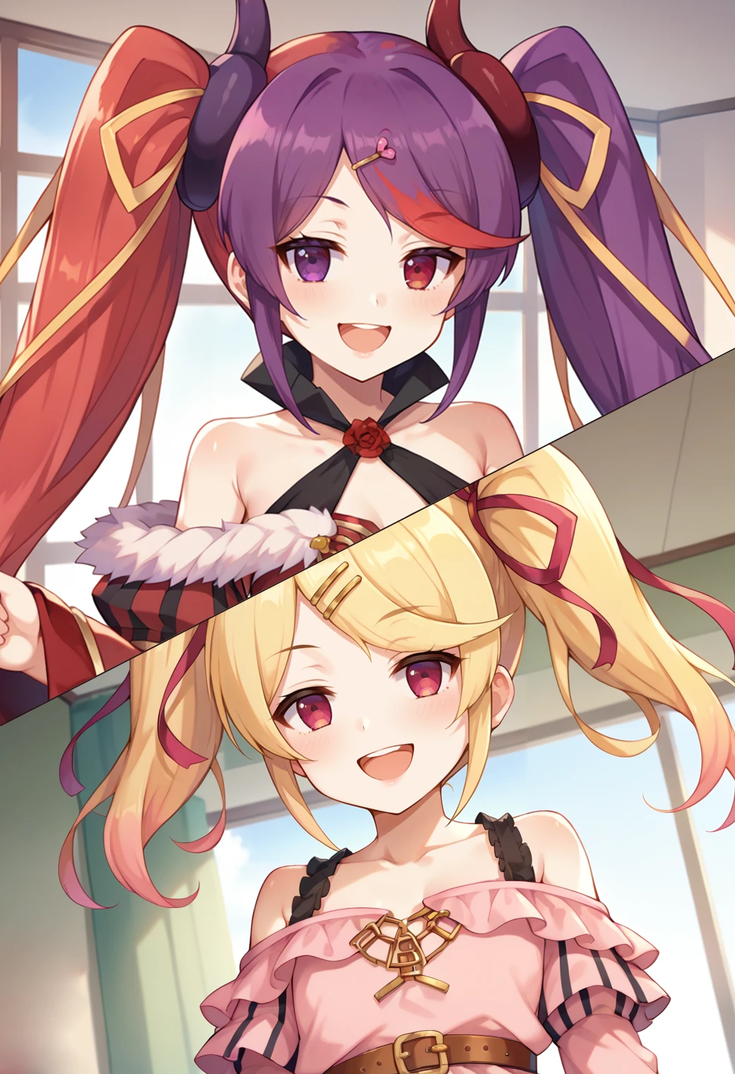 misakipcrbase, twintails, swept bangs, demon horns,Default Clothes: