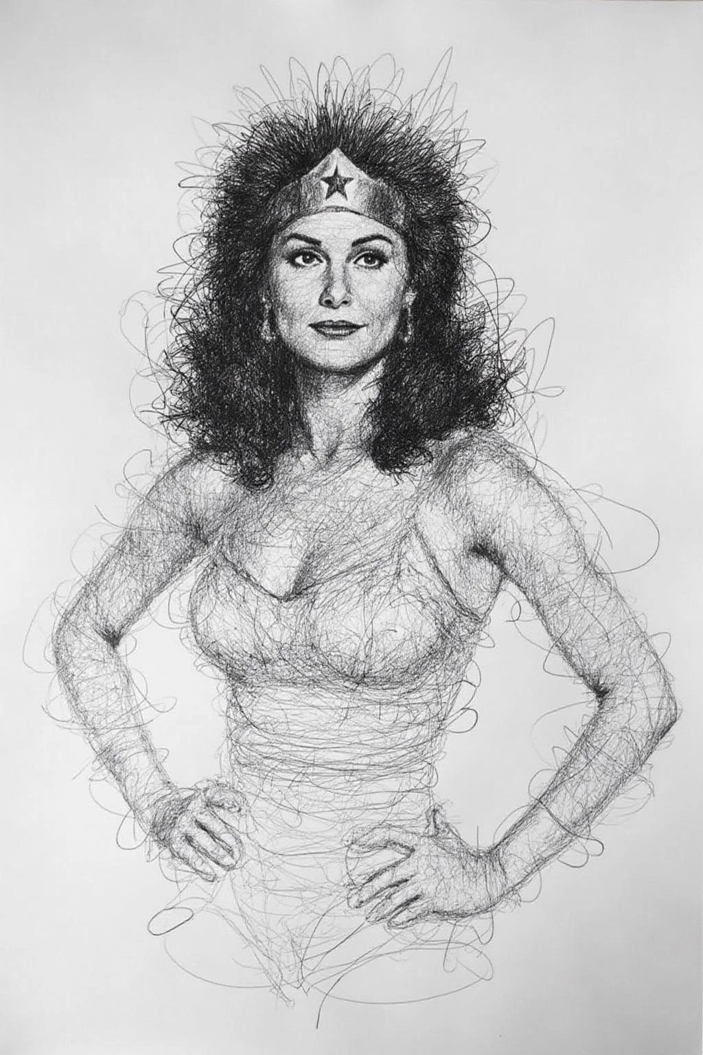 Trained on 17 scribble drawings, most of them depicting celebrities.