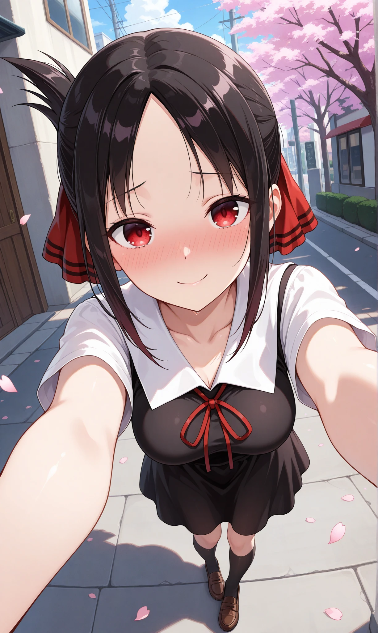 shinomiya kaguya, red eyes, black hair, sidelocks, parted bangs, hair ribbon, red ribbon๐ข๐๐๐ณ๐ถ๐: