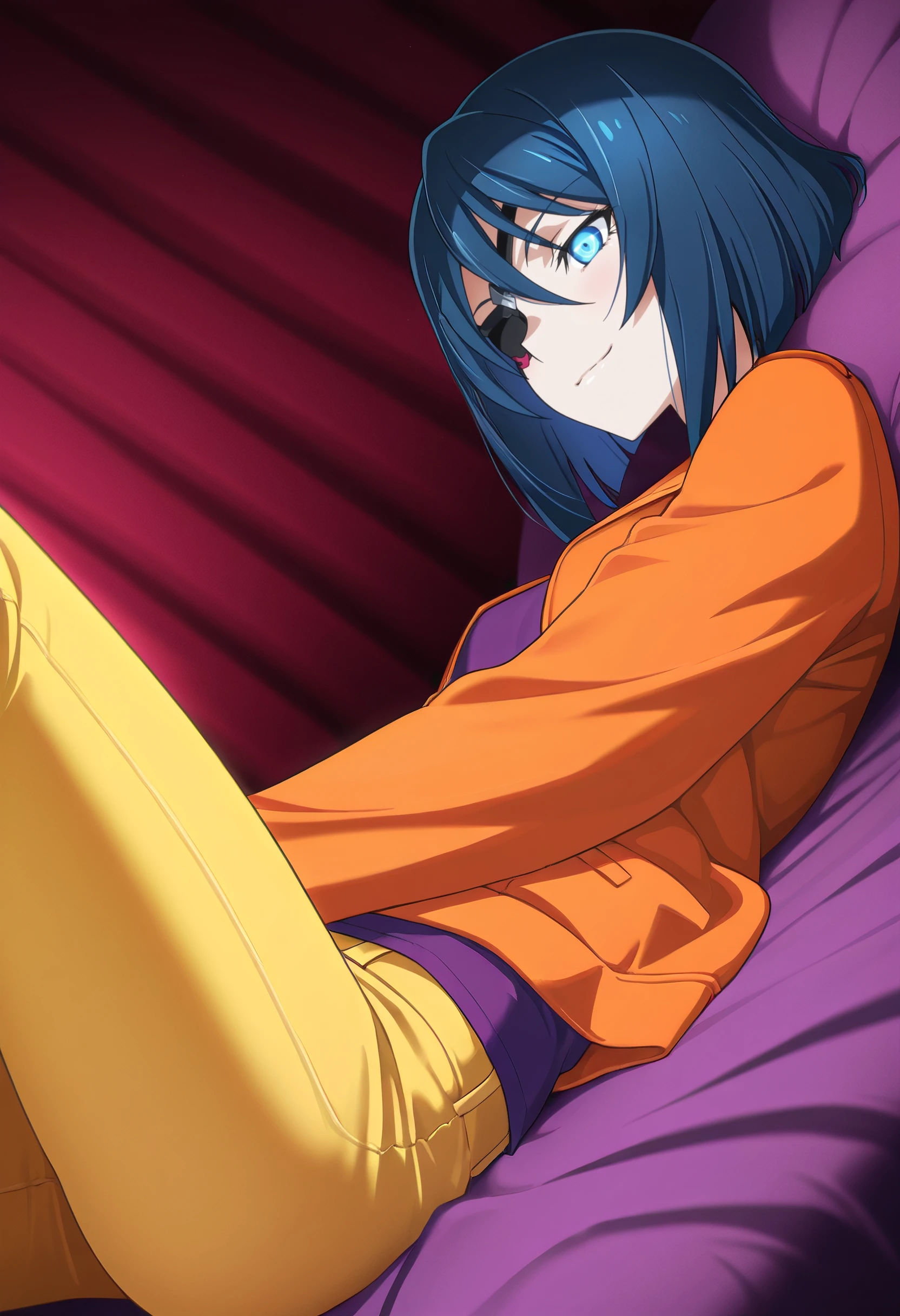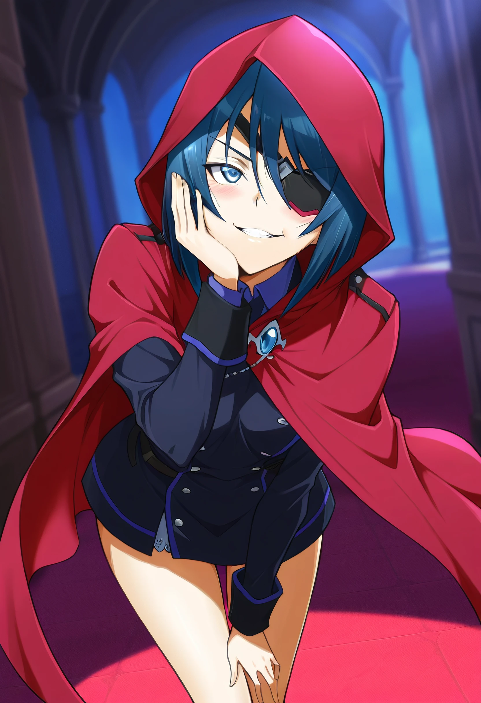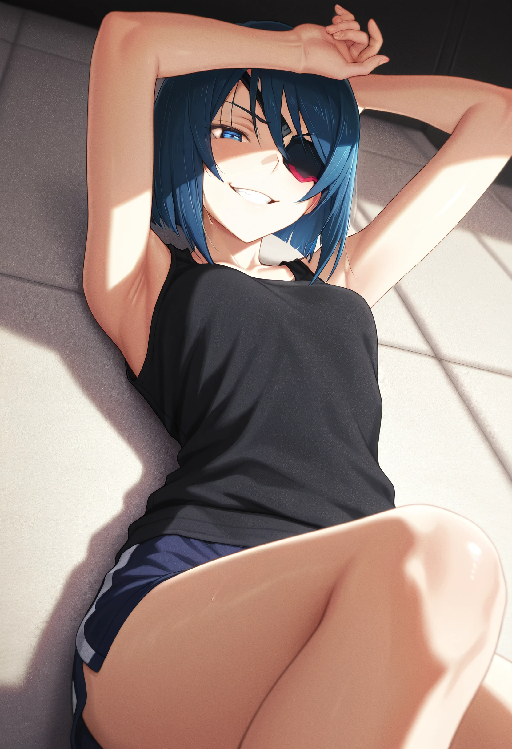 IStClarissa, short hair, blue eyes, blue hair, bob cut, eyepatch,