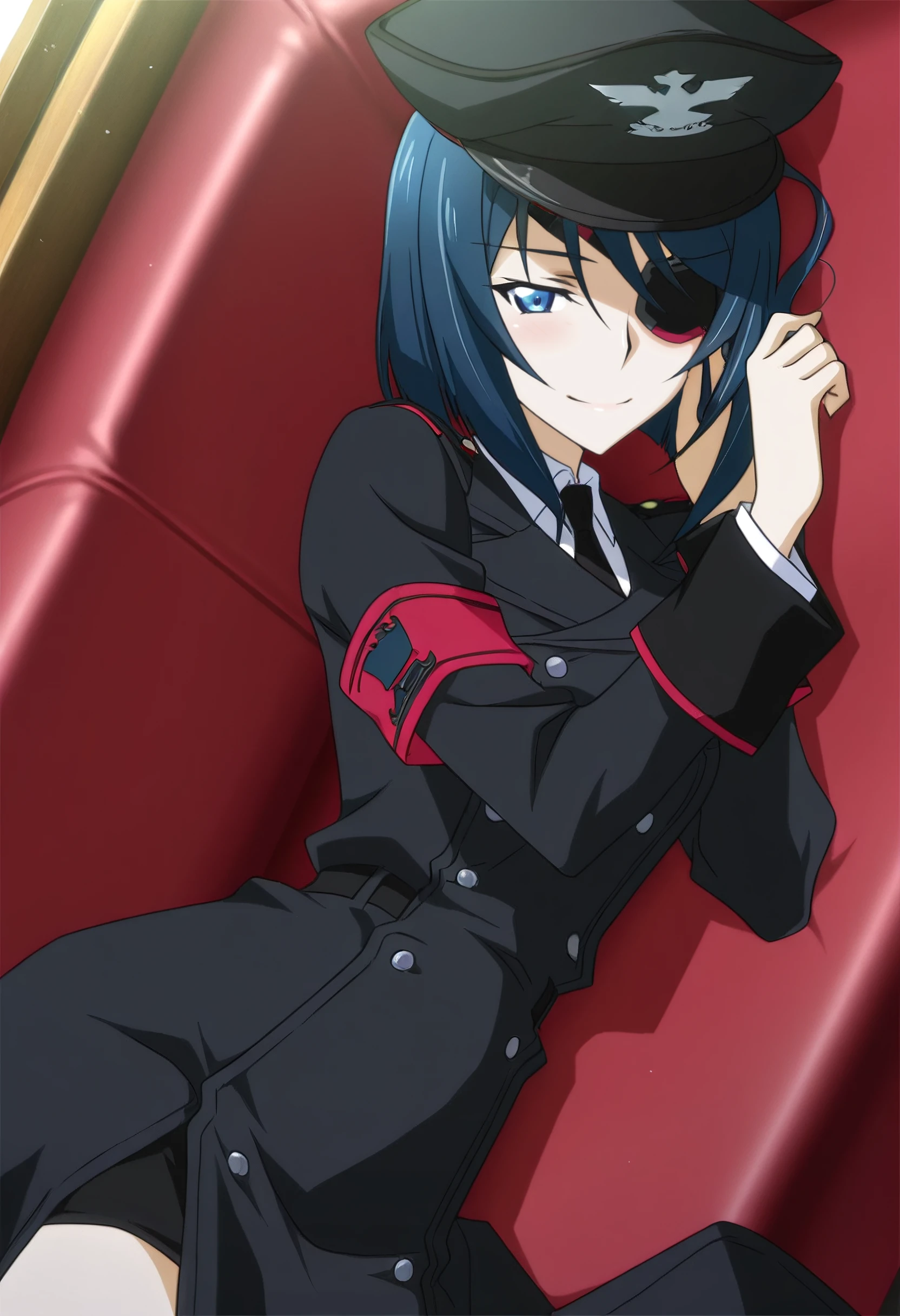 ClarissaOutfit, hat, military, military uniform, peaked cap, armband, necktie, military dress uniform, military hat, jacket, uniform, buttons, belt, black jacket, trench coat, long sleeves, black hat, skirt, pencil skirt, double-breasted, black skirt, black necktie,