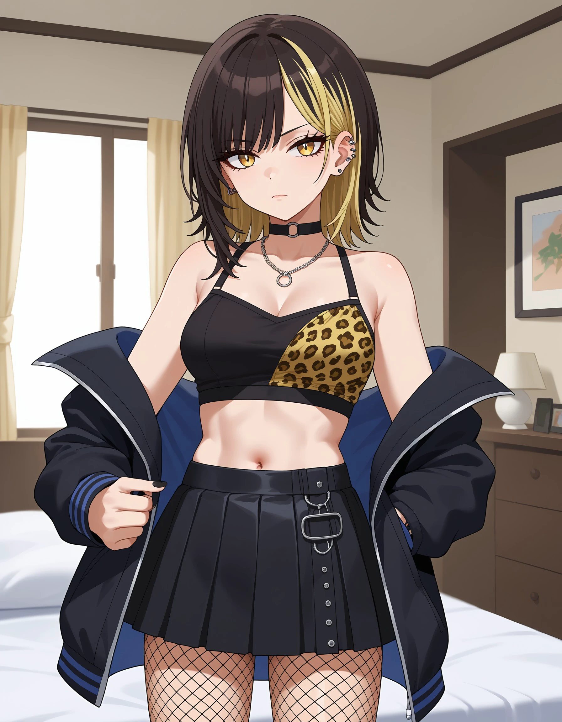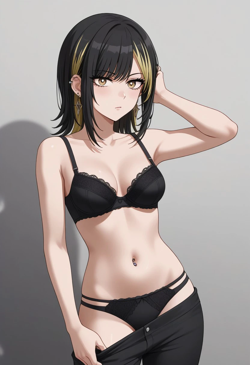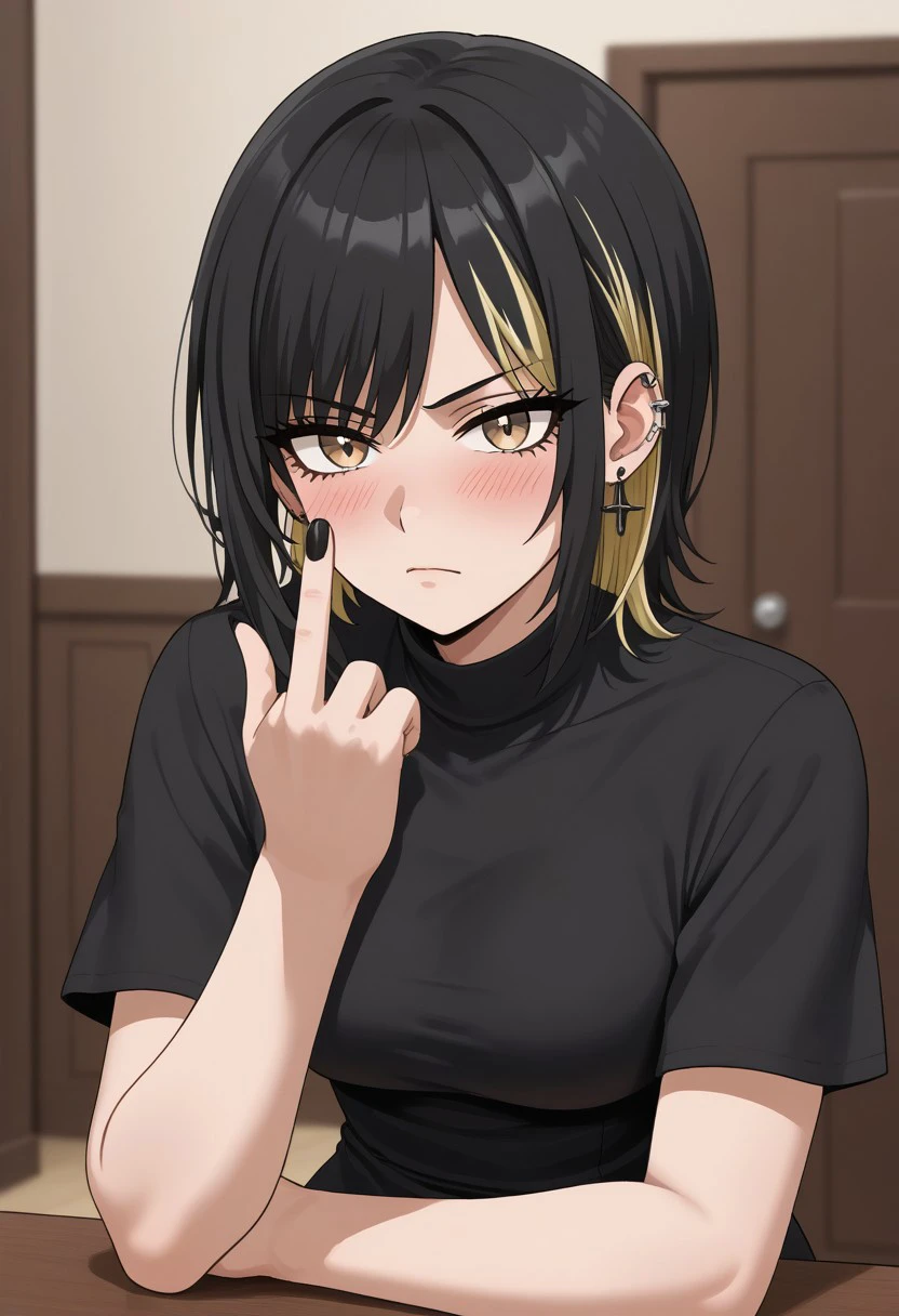 black hair, blonde hair, streaked hair, medium hair
