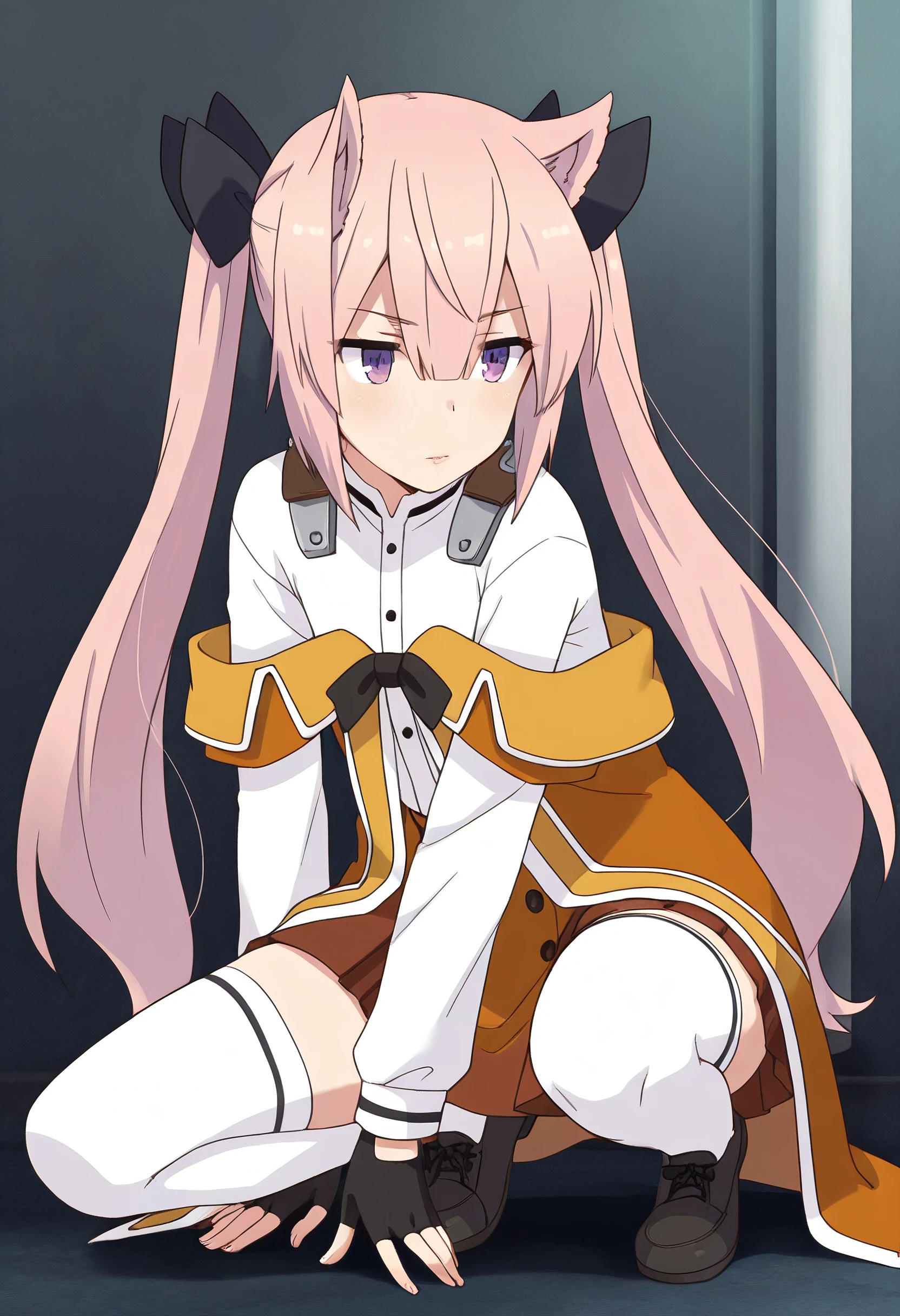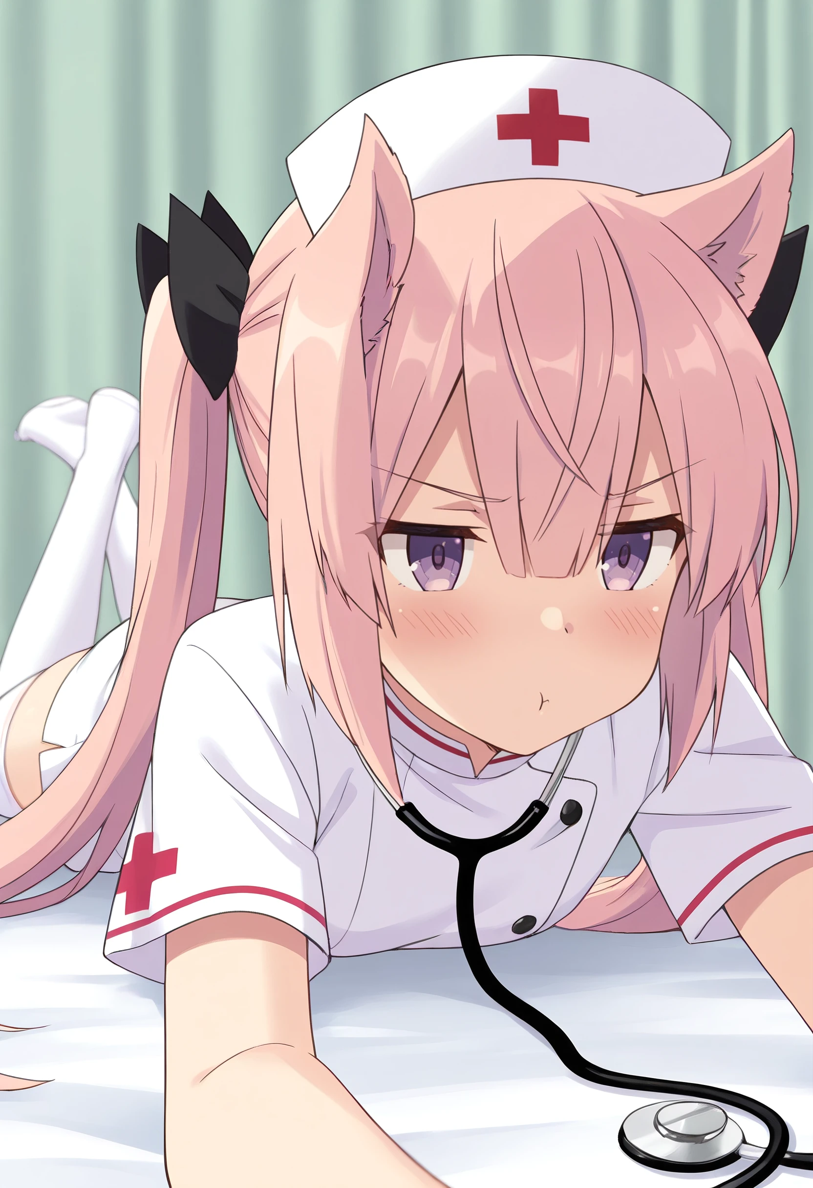 TNMKaoru, animal ears, twintails, long hair, pink hair, cat ears, purple eyes, hair between eyes, very long hair, animal ear fluff, hair ears,