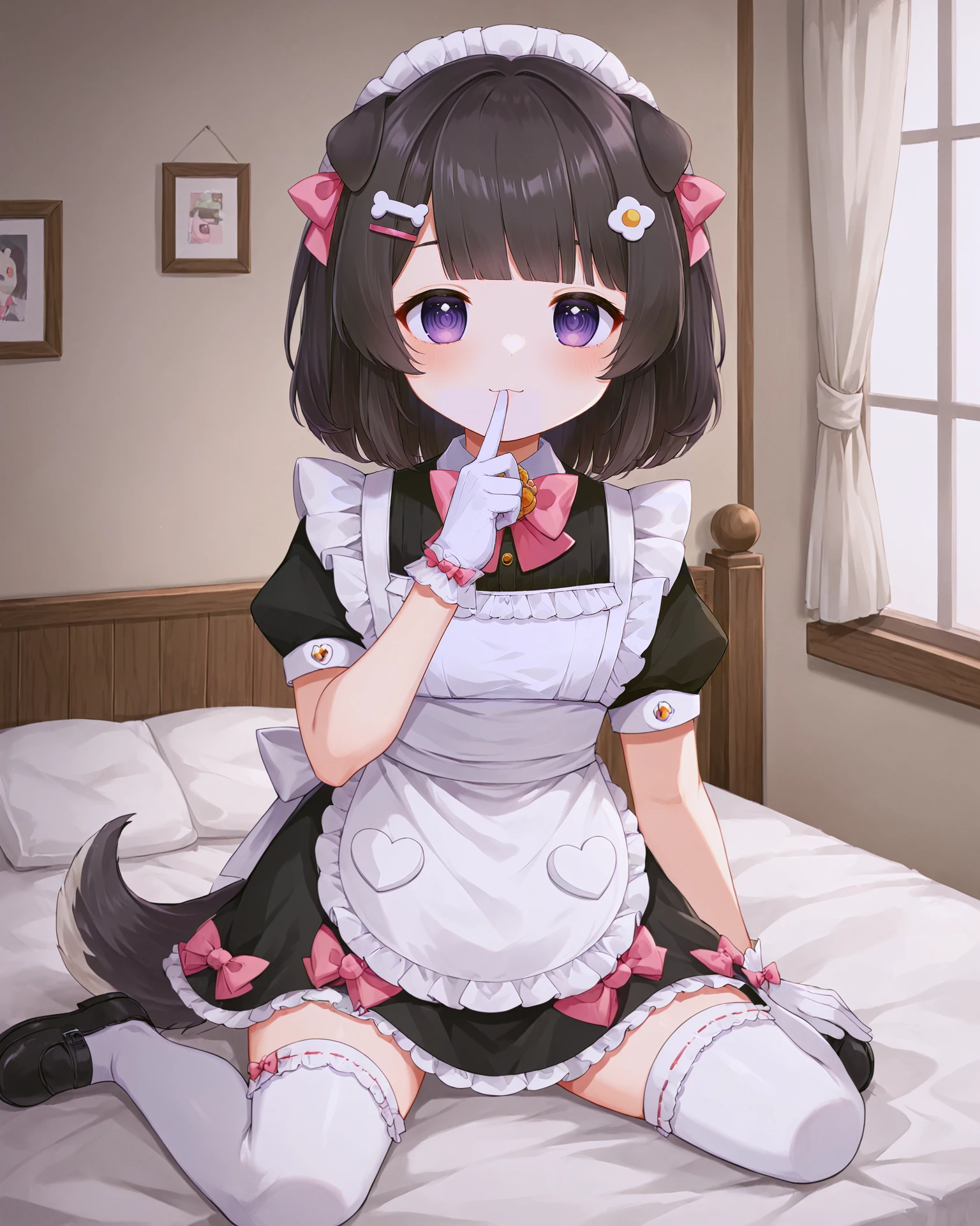 oyuchan, 1girl, purple eyes, dog ears, dog tail, hair ornament, bangs, blunt bangs,