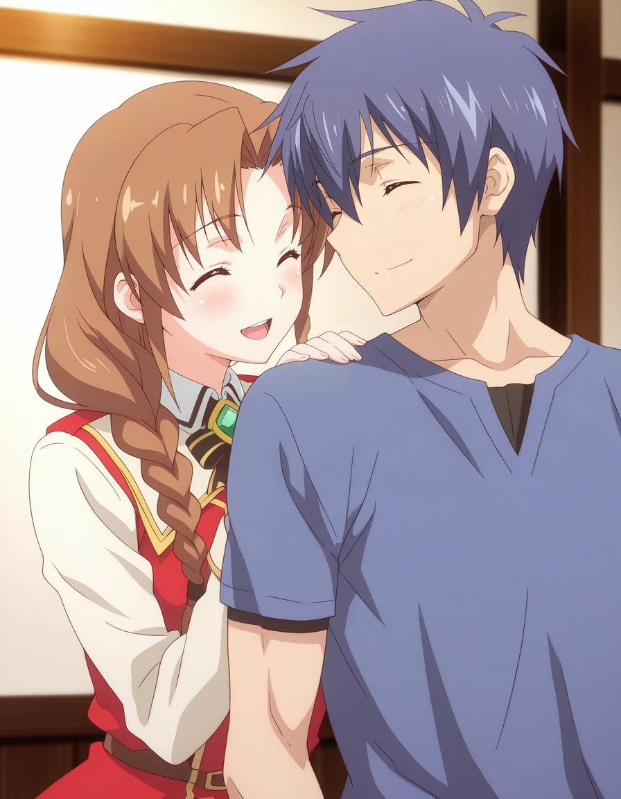 mai_kpk,mai_kaorikp,mature female,long_hair,brown_hair,single_braid,large breasts,bare_shoulders