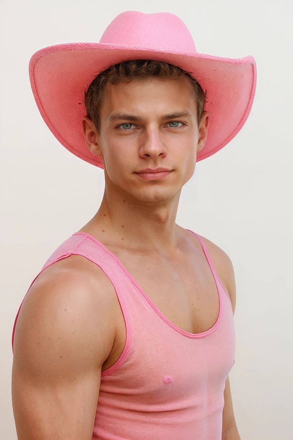 A few of the training images contain him wearing a pink cowboy hat with a drawstring around his neck. Use necklace in the negative prompt to avoid the drawstring showing around his neck.