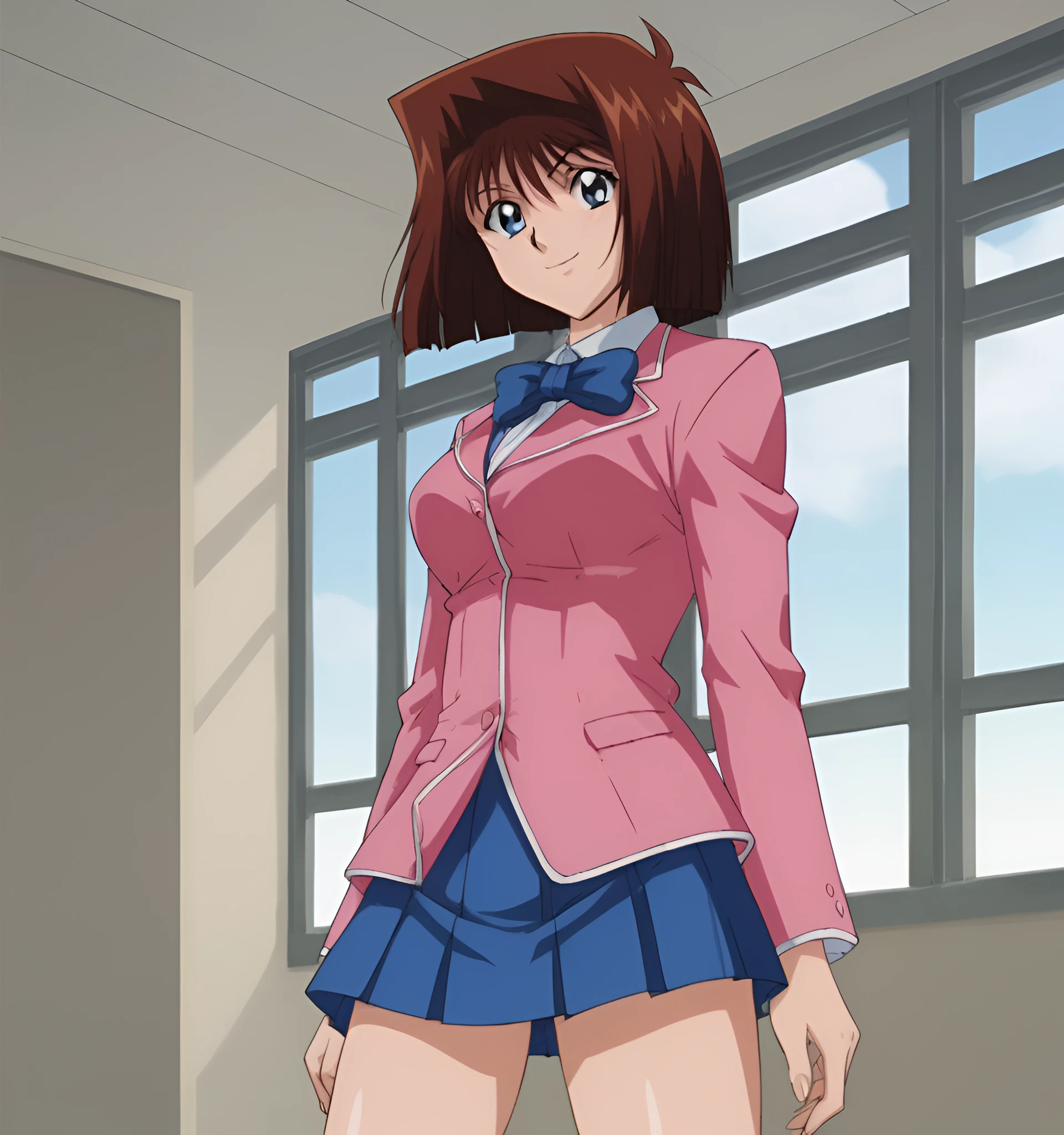 anzu m, brown hair, short hair, blue eyes, large breasts