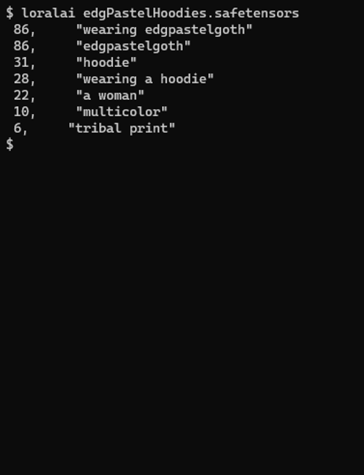 A bash script, which uses jq (https://jqlang.github.io/jq/) to extract the top 7 keywords used in training.