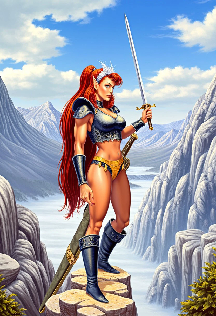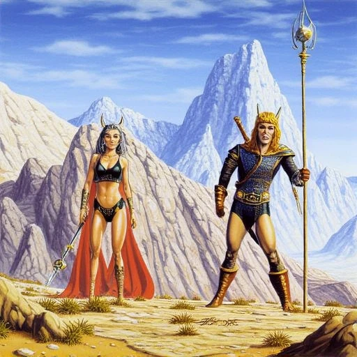 Heroic Fantasy Characters: Generate powerful male and female figures in armor, wielding swords and other fantasy weapons.