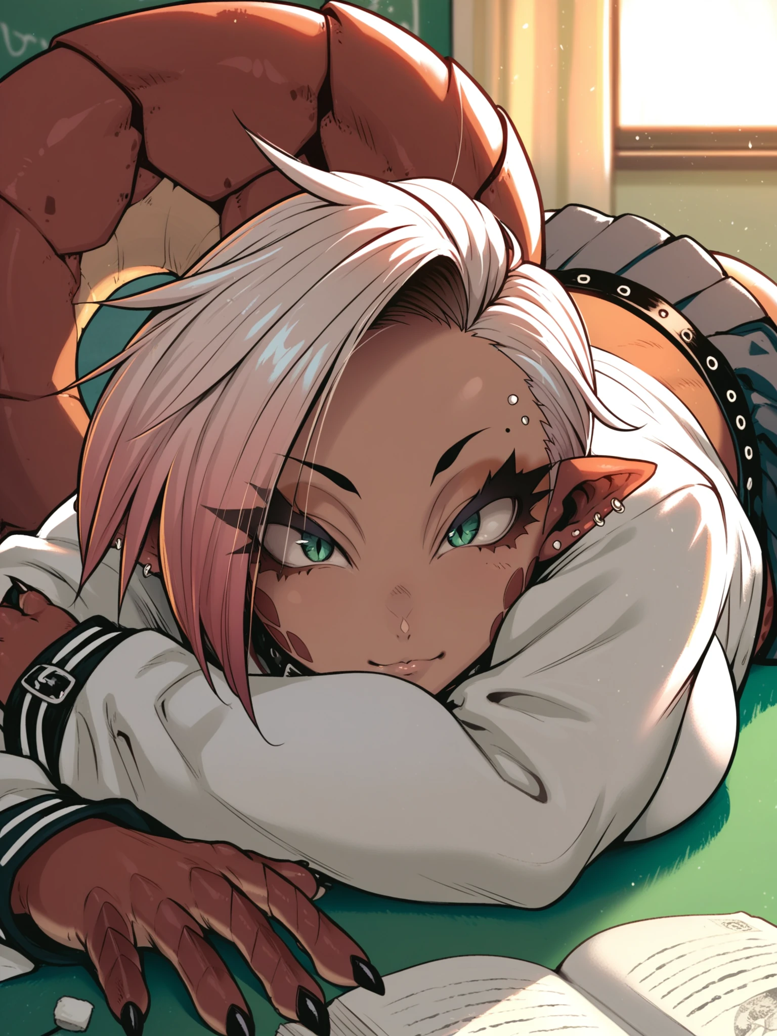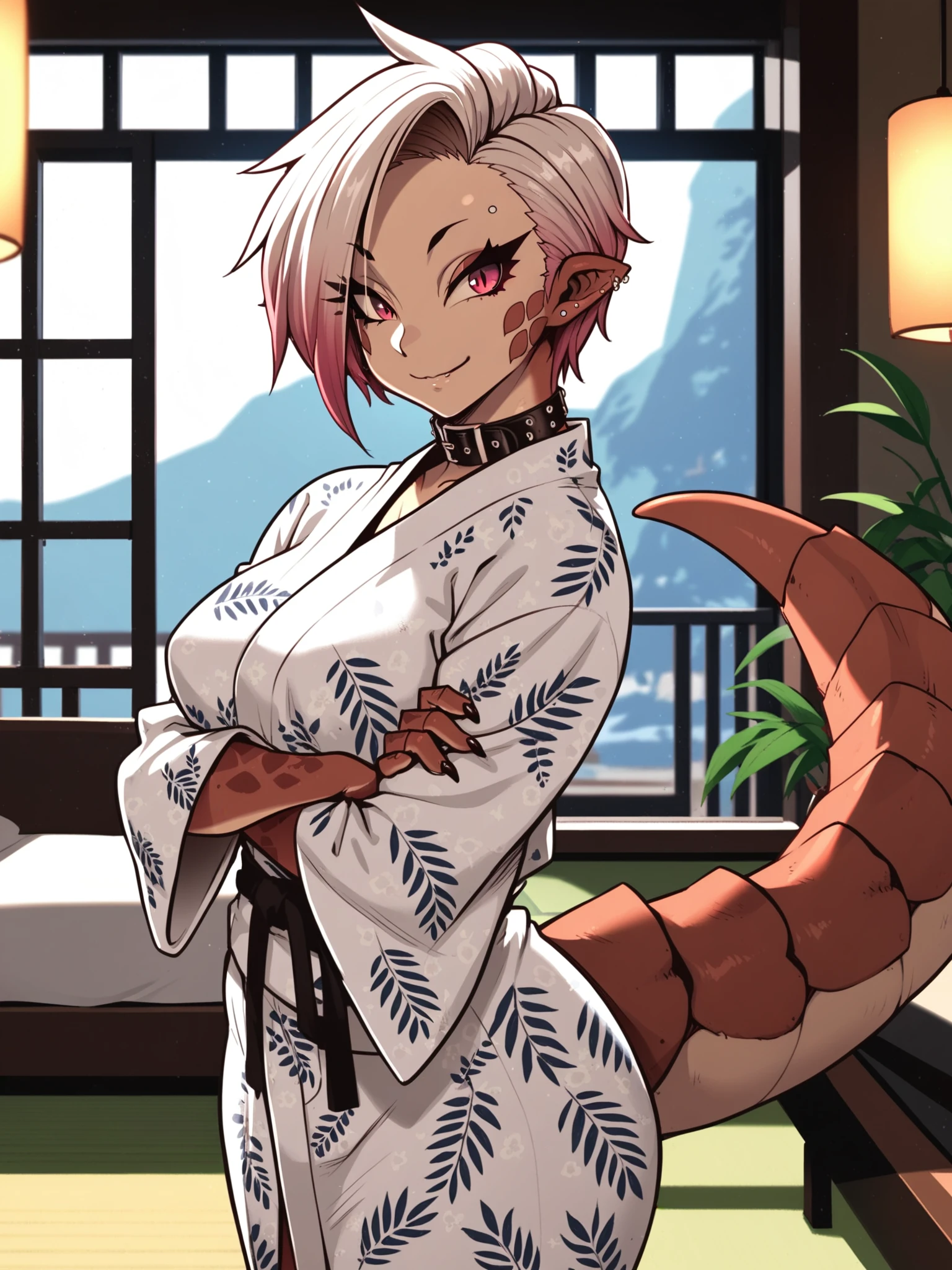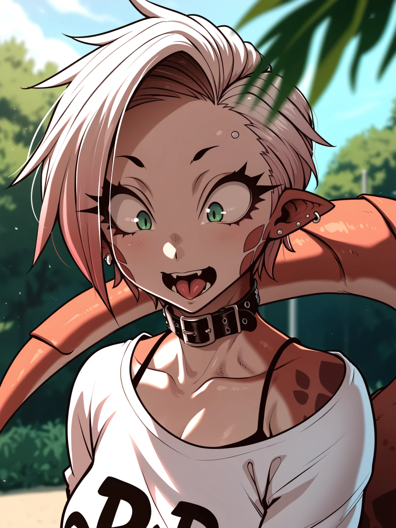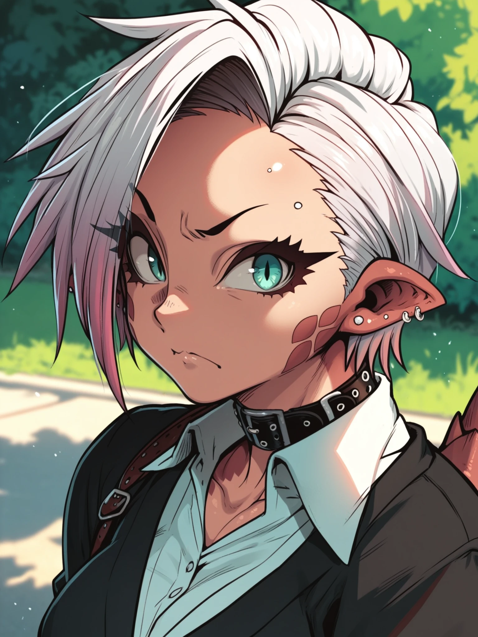 Recommended prompt: ht_riza, ear piercing, earrings, belt collar