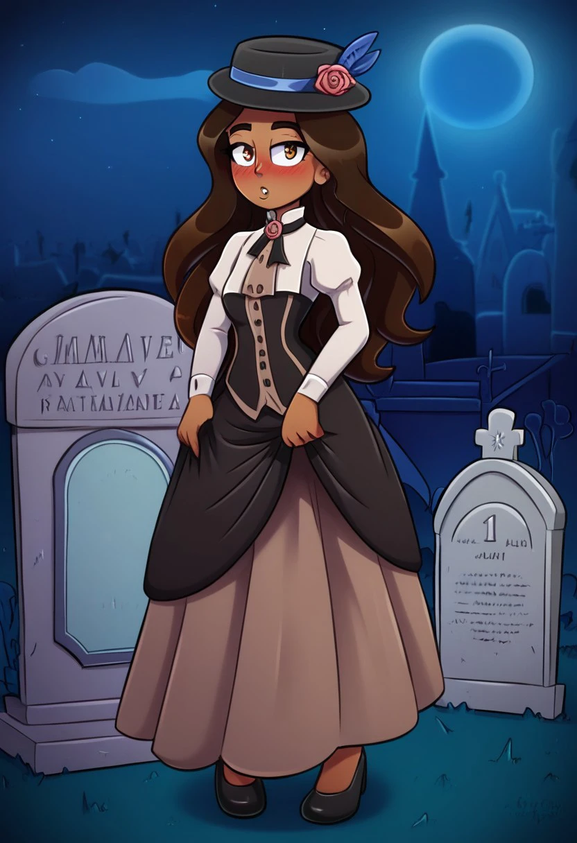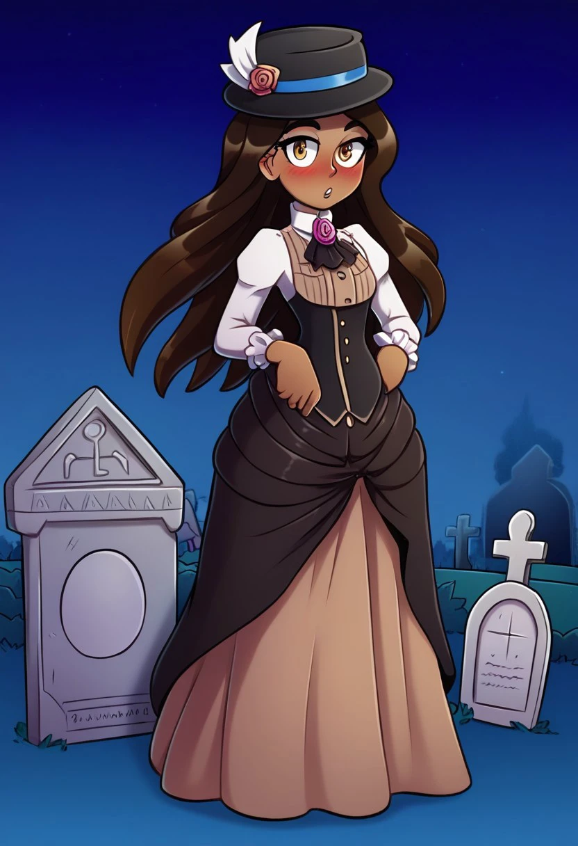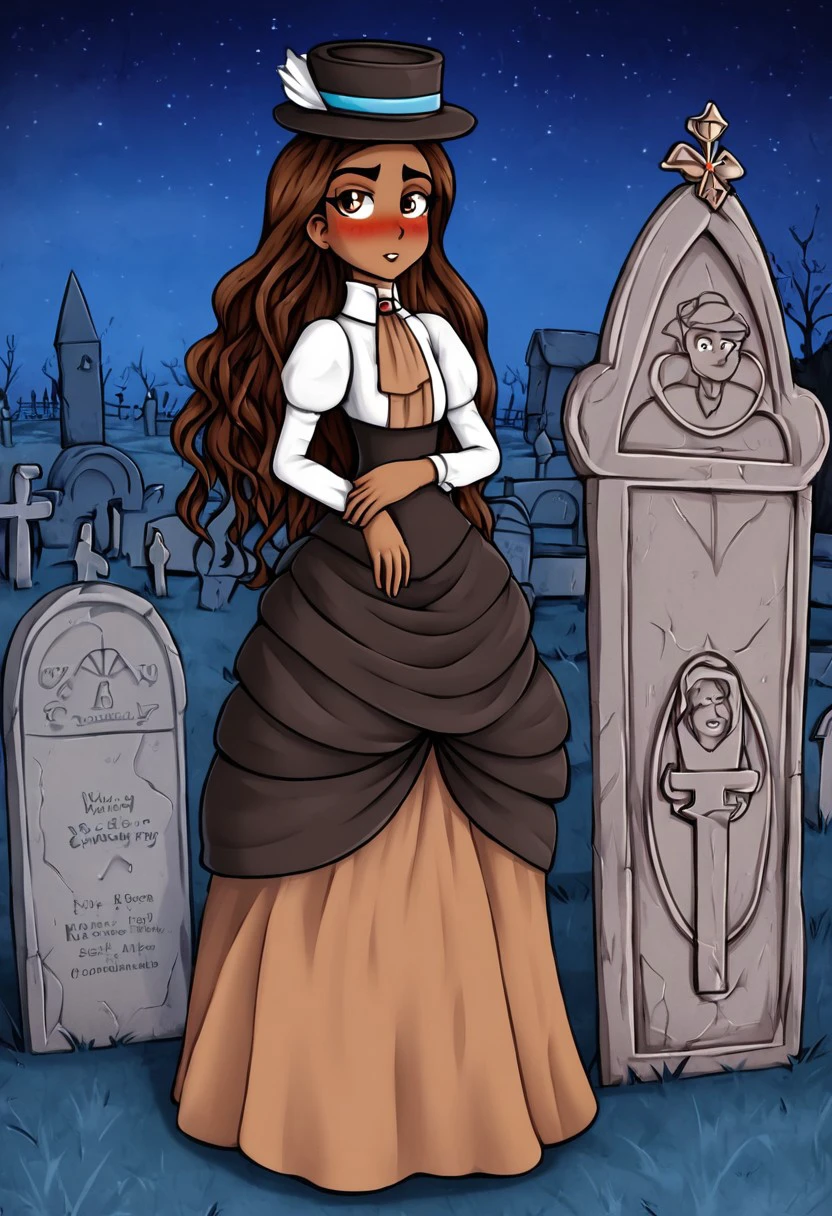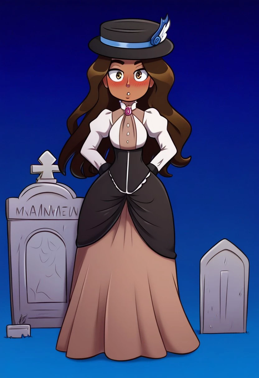 franimel, dress, long hair untill hips, brown skin, brown eyes, freckles, hat