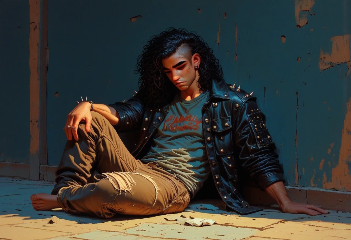 This is a Lora designed to create a stylized image for gritty images of characters in relaxed poses with strong lighting and color complements.