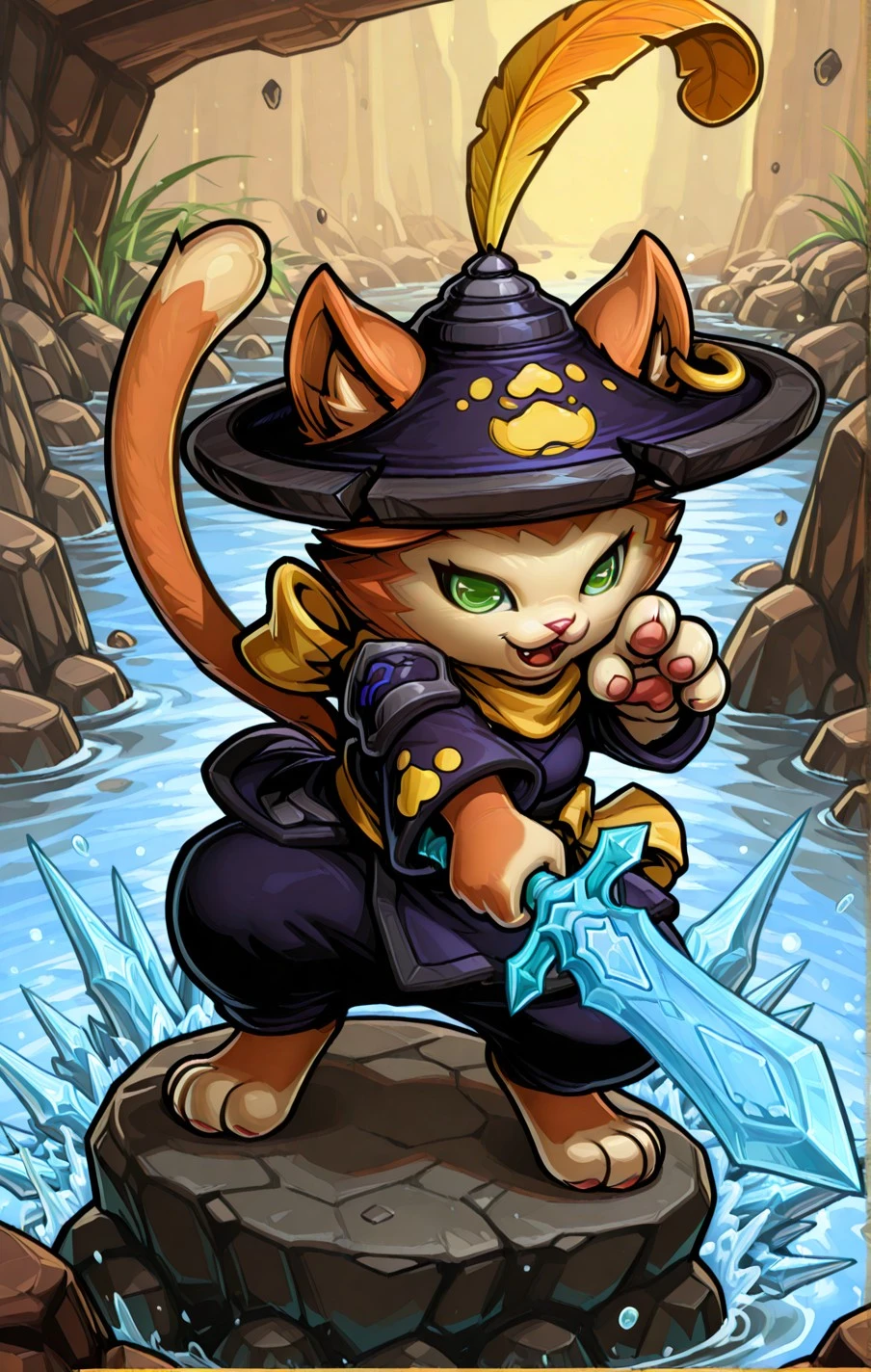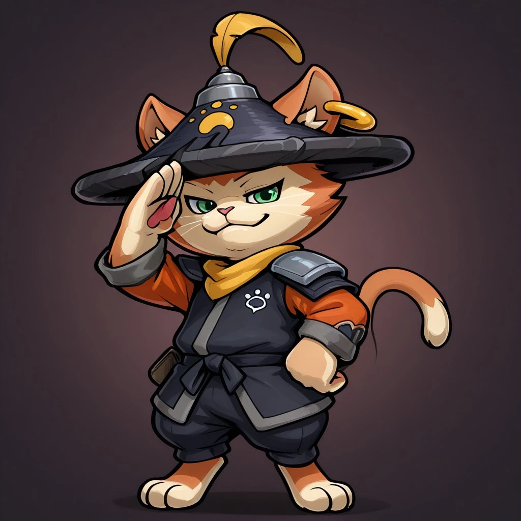 recommended tags: hat, earring, feather, cat,scarf,green_eyes,
