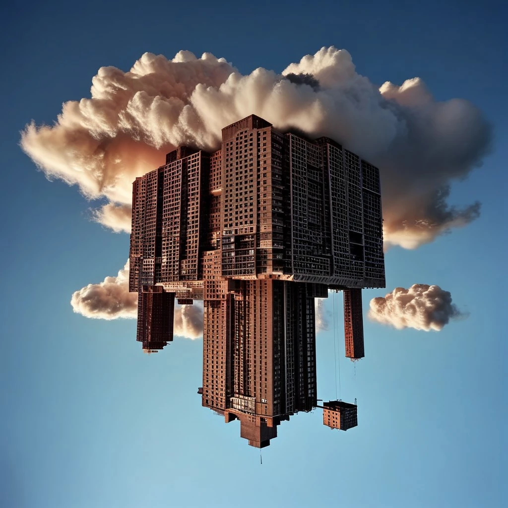 This was trained to generate images of twisted and fragmented cityscapes with sideways and upside-down buildings.
