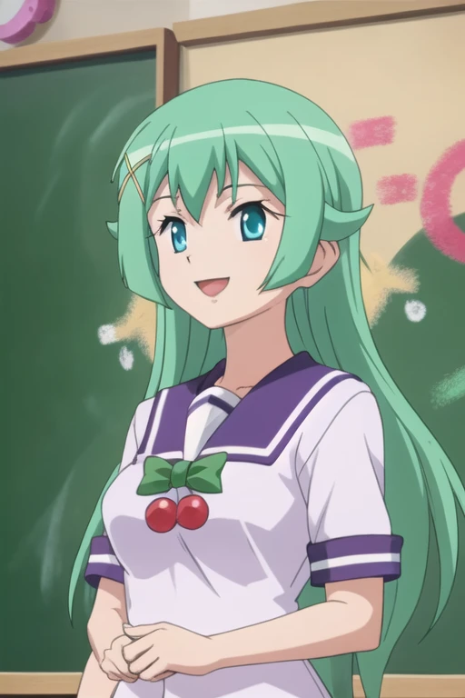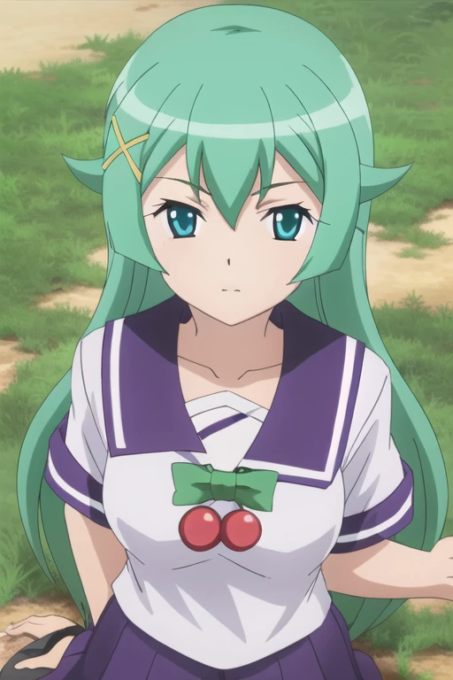 Trigger Words: violet tesla, long hair, green hair, blue eyes