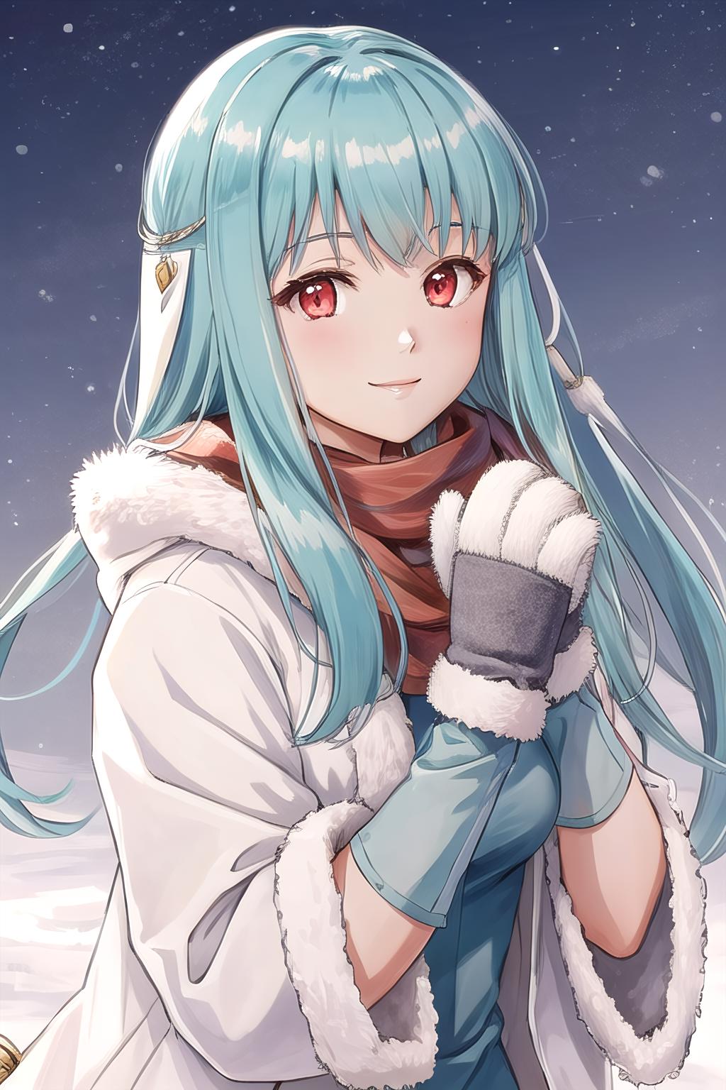 I had a lot of fun making this one! It works pretty well, though sometimes the outfit can get a little messed up. Weirdly, red eyes didn't get learned and needs to be prompted which is a little unfortunate, but oh well. She looks super cute in a winter coat though!