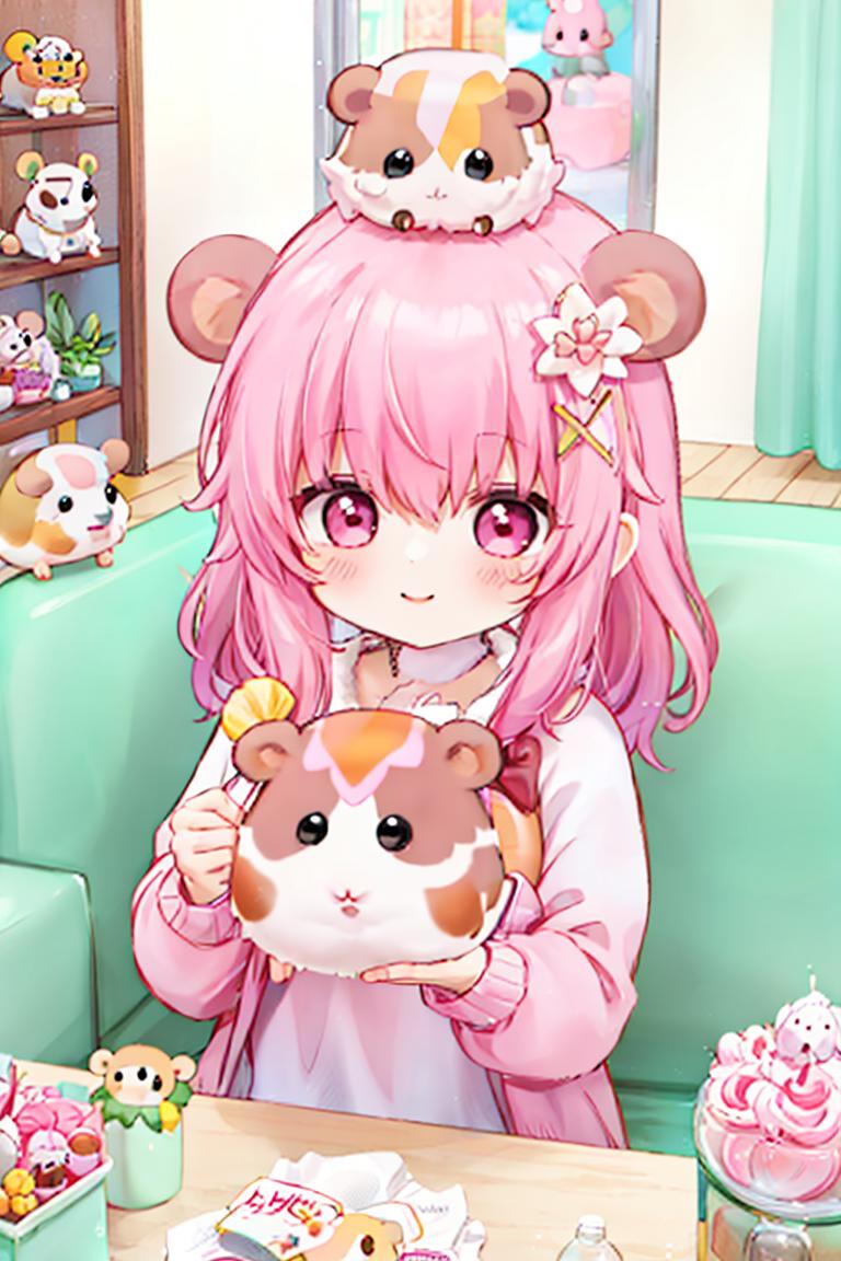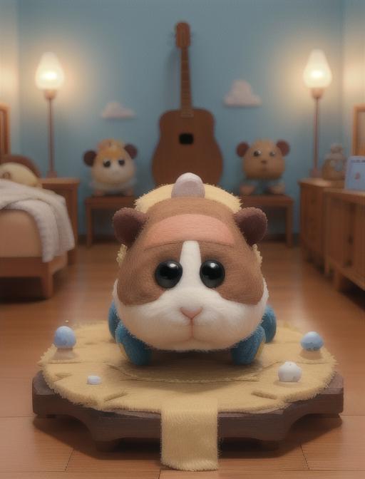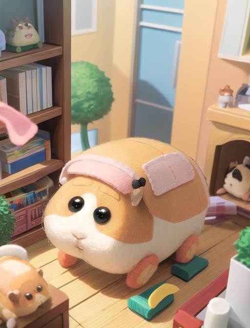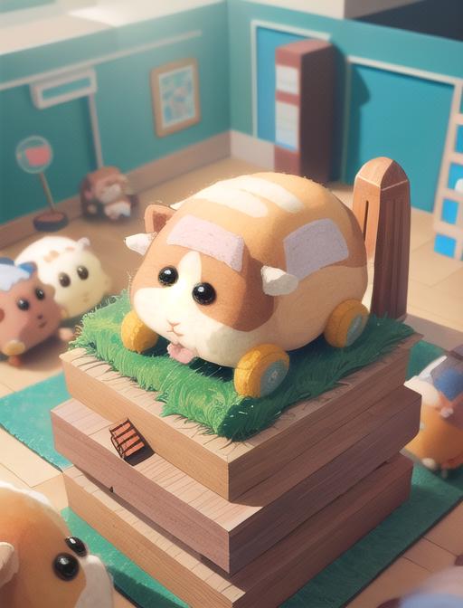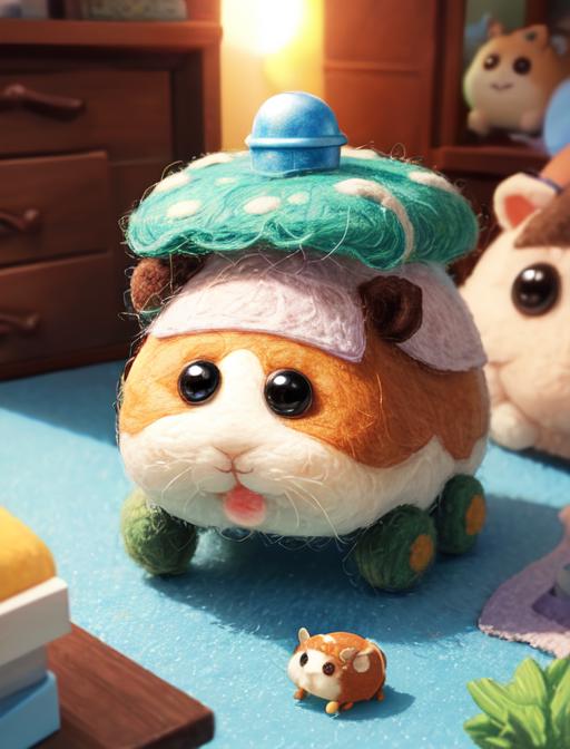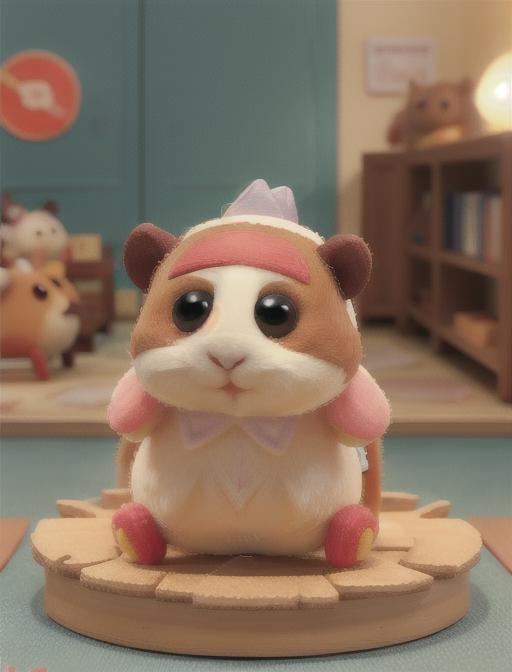 Additional words that may help: miniature, diorama, toy, felt hamster,