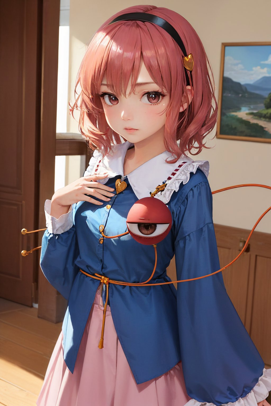 Default Outfit: hairband, shirt, frilled shirt collar, frilled sleeves, wide sleeves, pink skirt
